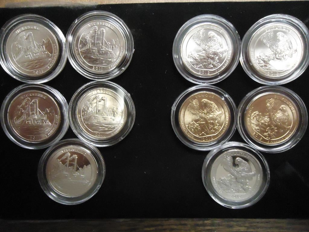2011 VICKSBURG P & D UNC, P & D SATIN FINISH AND S PROOF, 2012 EL YUNQUE P & D UNC, P & D GOLD PLATED AND S PROOF.