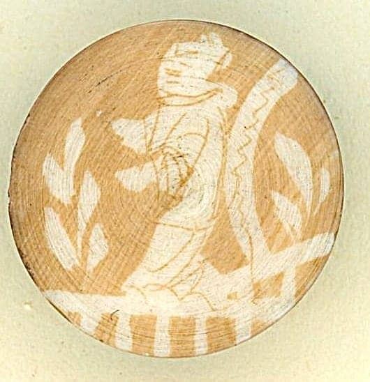 12 Small late 19th & early 20th C. natural material examples. This 167:184lot consists of 6 beautifully detailed Wax Resist buttons of an Asian women and 6 red pigmented carved verbal examples.