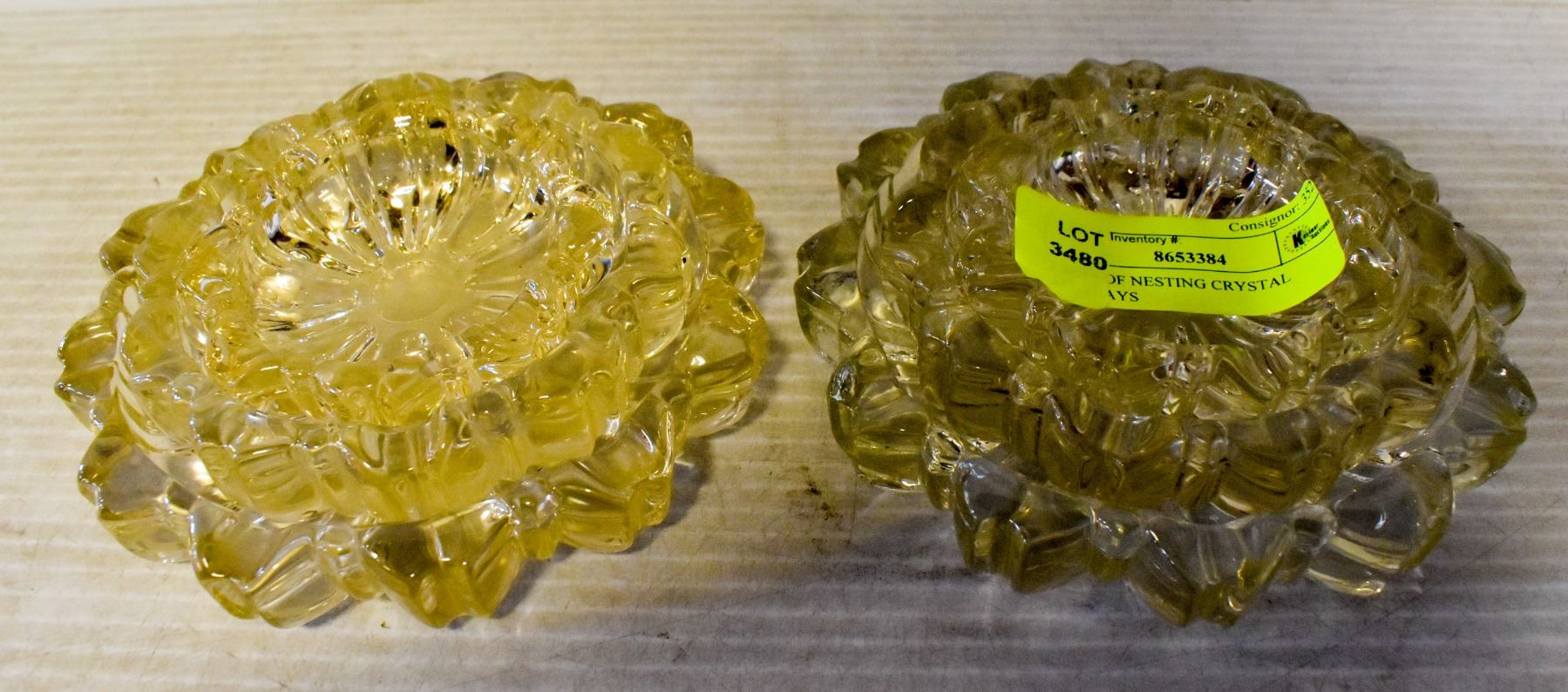 2 SETS OF NESTING CRYSTAL ASHTRAYS