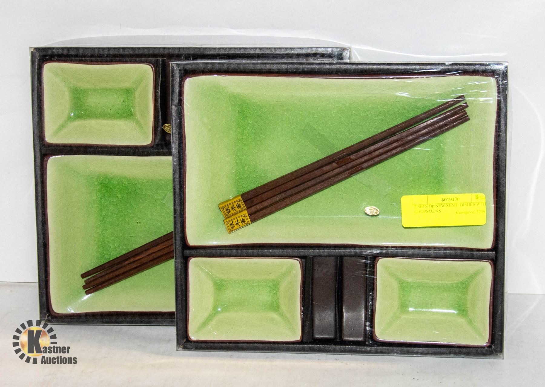 2 SETS OF NEW SUSHI DISHES WITH CHOPSTICKS