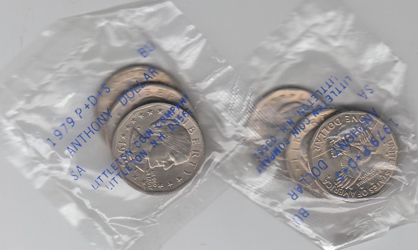 2 SETS OF P D & S ANTHONY DOLLARS SEALED 6 $1 COINS