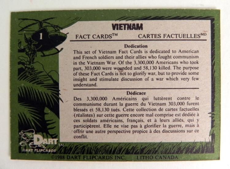 2 SETS OF VINTAGE "VIET NAM" WAR FACT TRADING CARDS--APPROX 84 CARDS -1988 CANADA-DART FLIPCARDS