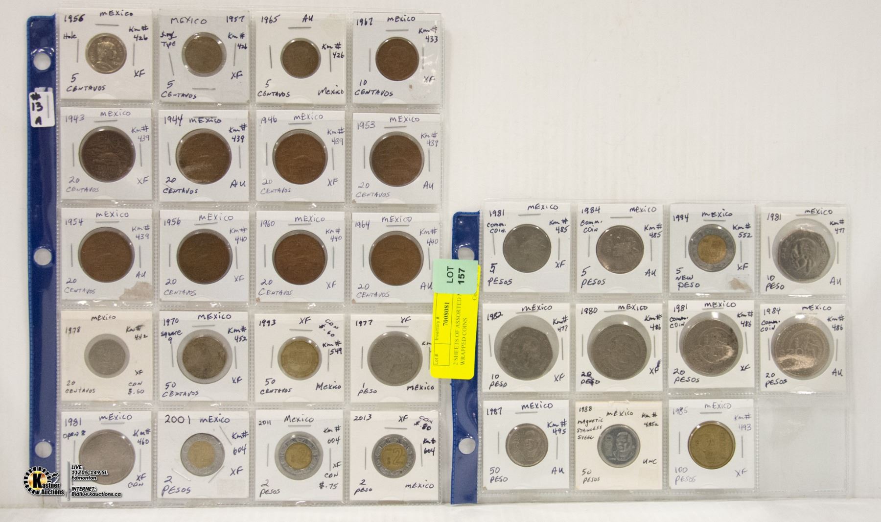 2 SHEETS OF ASSORTED MEXICAN WRAPPED COINS
