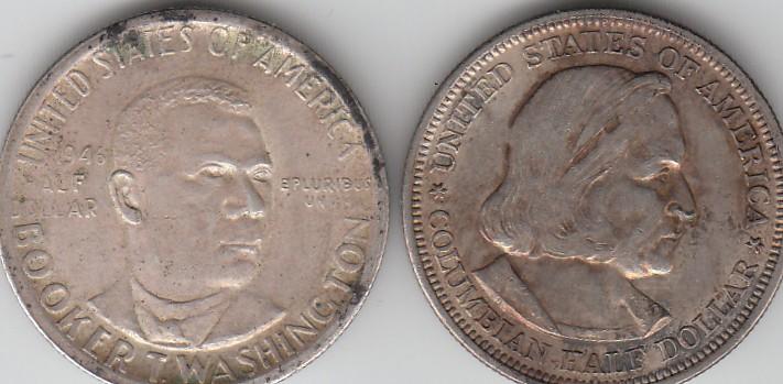 2 SILVER COMMEMORATIVE HALVES 1892 COLUMBIA EXPO & 1946 BOOKER T