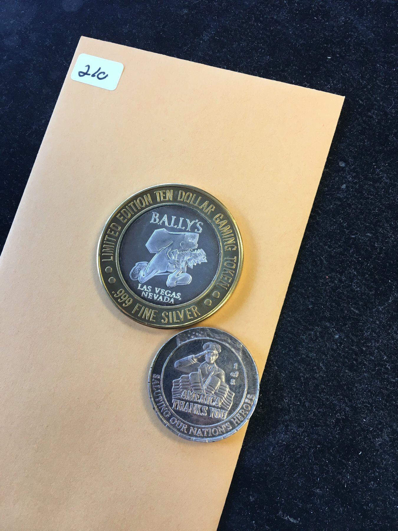 NICE LOT OF 2 SILVER GAMBLING TOKENS! 1oz TOTAL