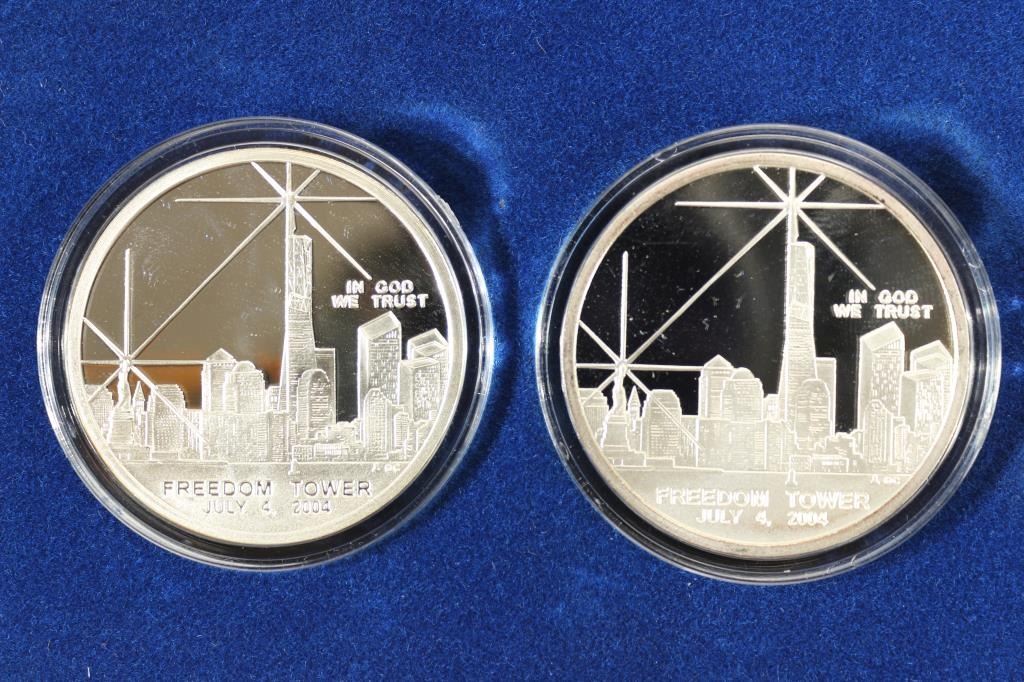 TRADE CENTER RECOVERY SILVER BY THE COMMONWEALTH NORTHERN MARIANA'S ISLANDS. THE 1ST ONE IS .999 FINE SILVER AND THE 2ND ONE IS 100 MIL CLAD