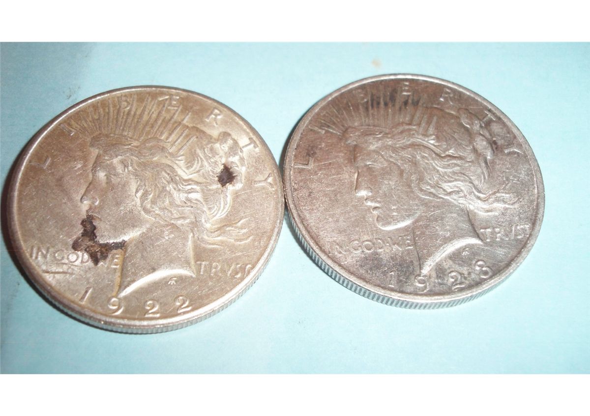 2 SILVER PEACE DOLLARS, 1922-S & 1923