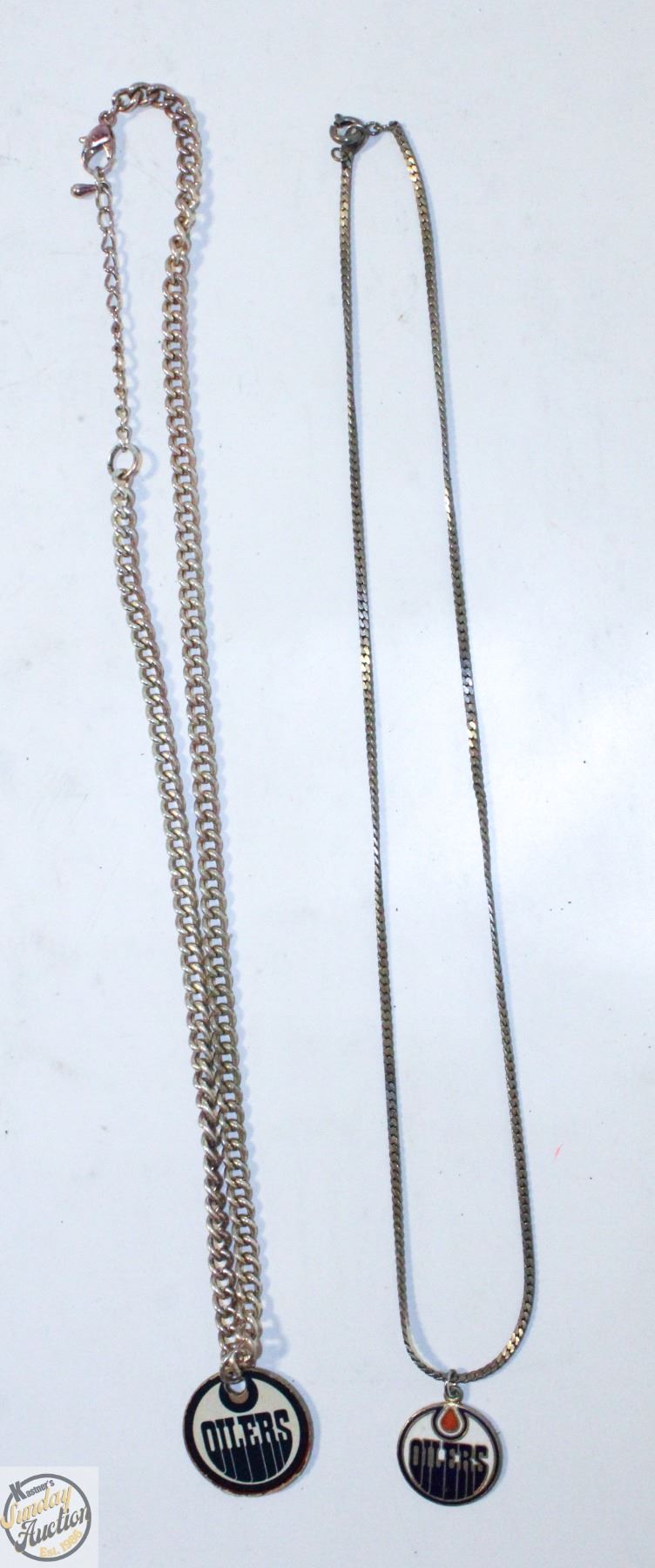 2 SILVER TONE OILERS PENDANT NECKLACES