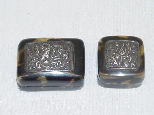(2) SMALL CHINESE SHELL & SILVER BOXES: (1) 1 1/8" SQUARE & (1) 1 5/8" X 1 1/8" - CRACKS & IMPERFECTIONS