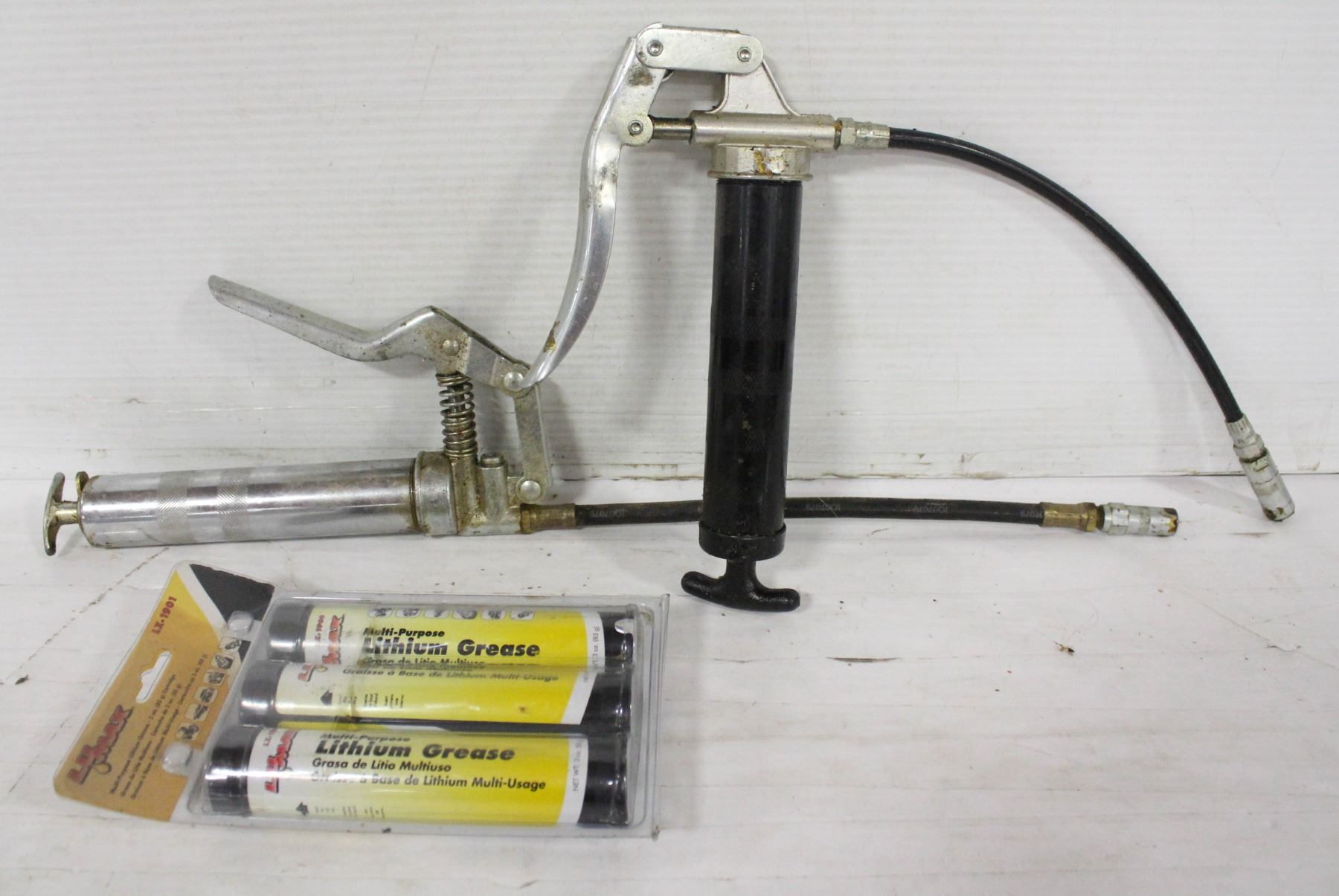 2 SMALL GREASE GUNS AND 3 TUBES NEW LITHIUM GREASE