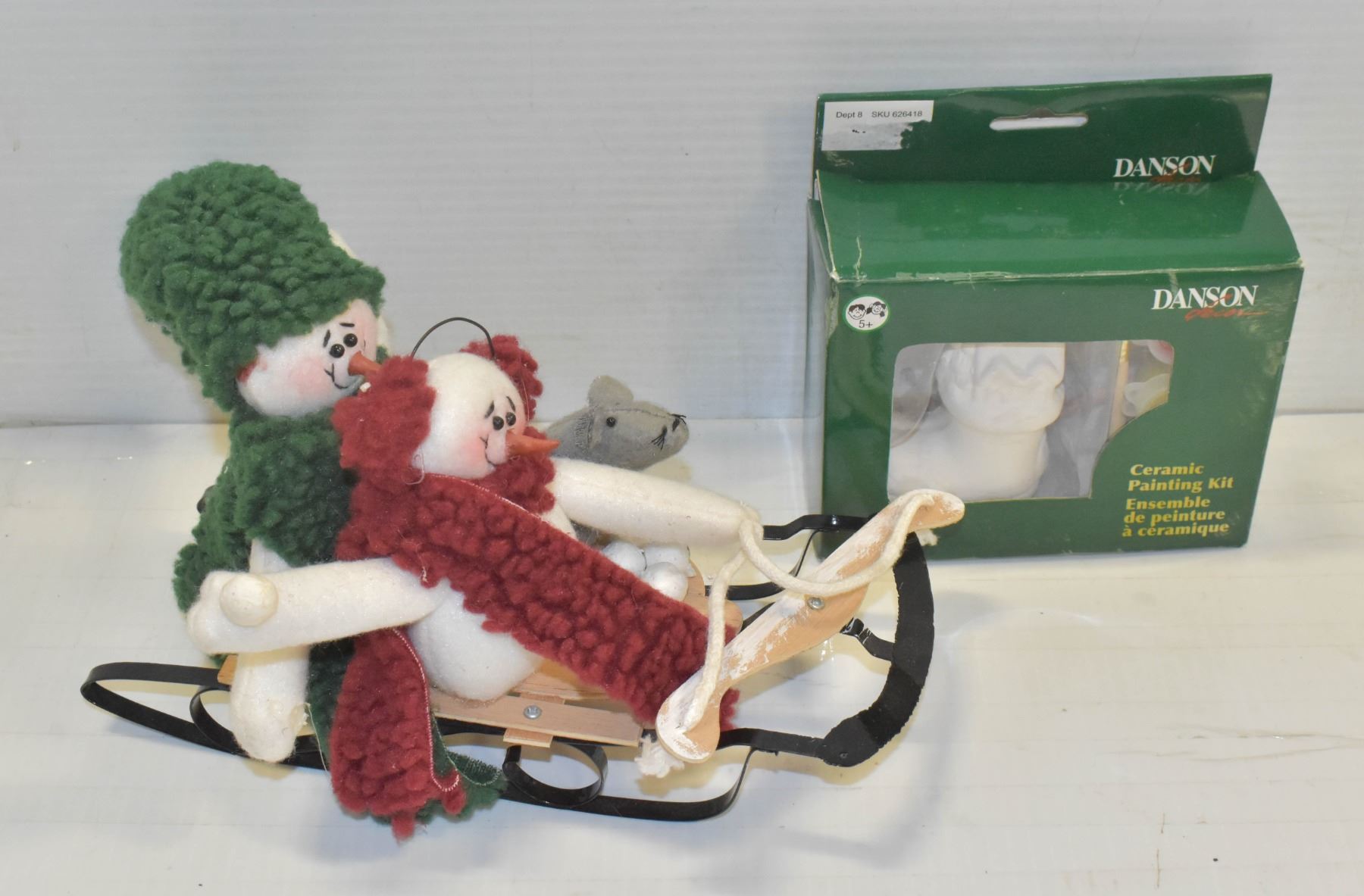 2 SNOWMEN ON SLED + CERAMIC CHRISTMAS PAINT KIT