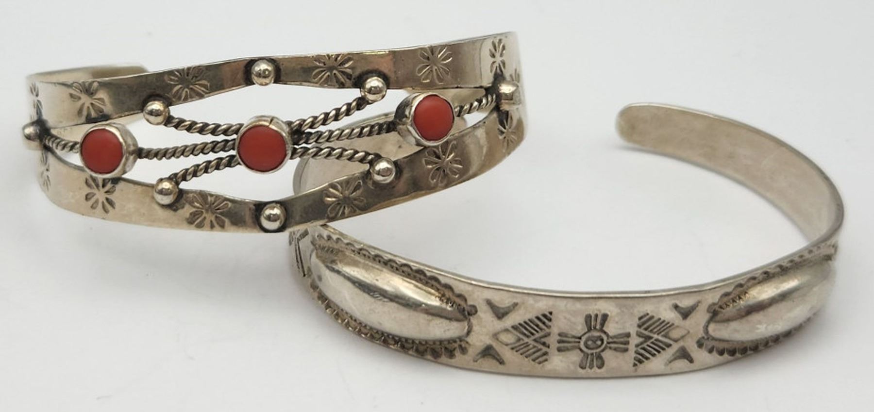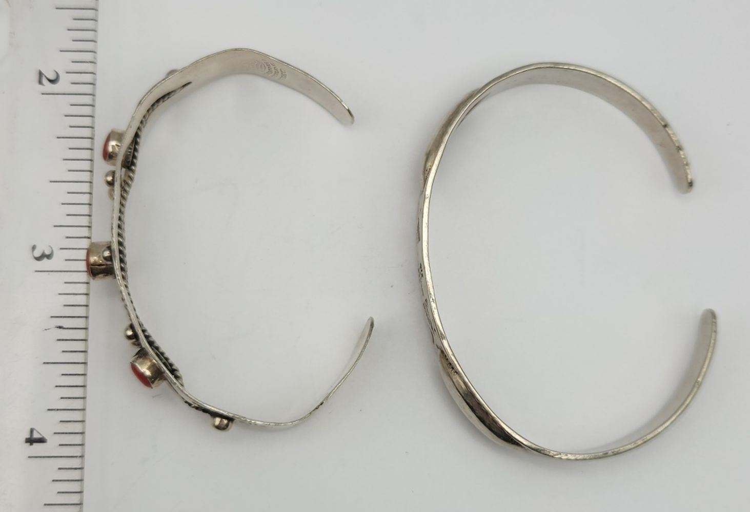 DESIGN: (1)6 INCH WITH GAP MEXICO WITH RED CORAL STONES & (1)6.5 INCH WITH GAP-TOTAL 13 DWT