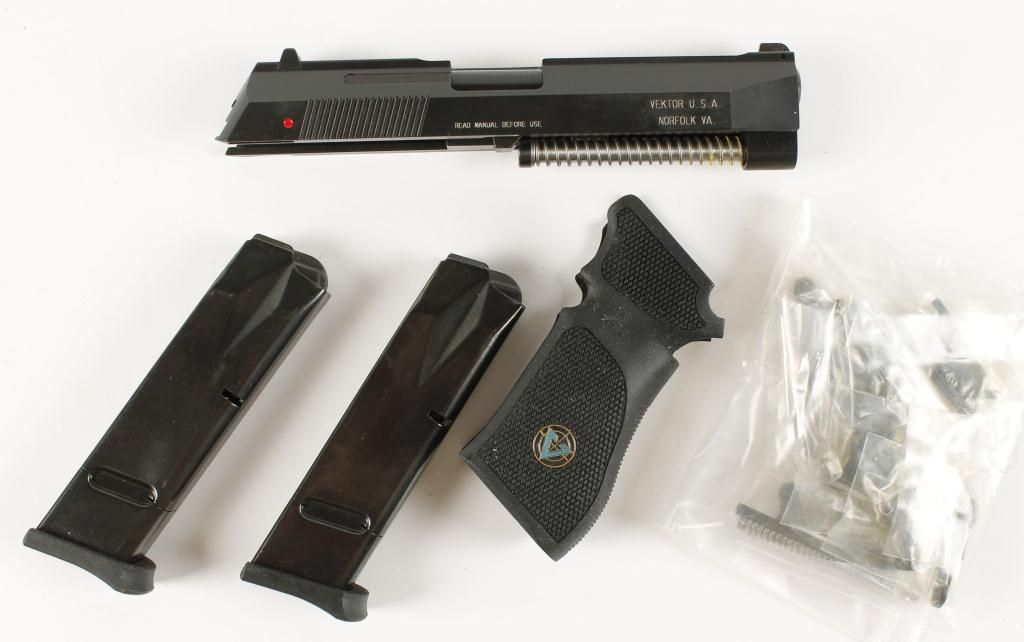Each kit includes slide and barrel, checkered black plastic wrap around grips, trigger parts, hammer parts and 2 magazines.