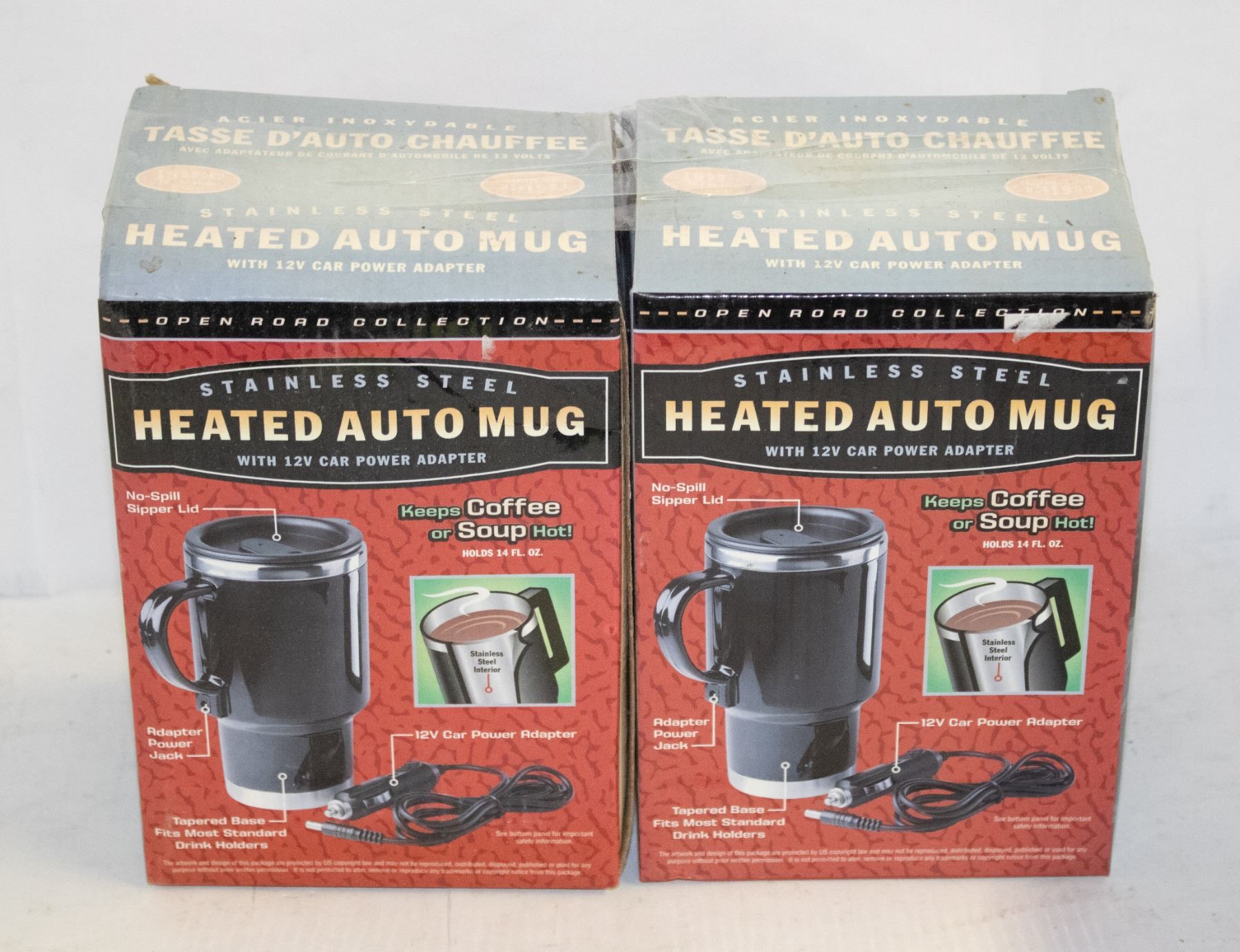 2 STAINLESS STEEL HEATED AUTO MUGS