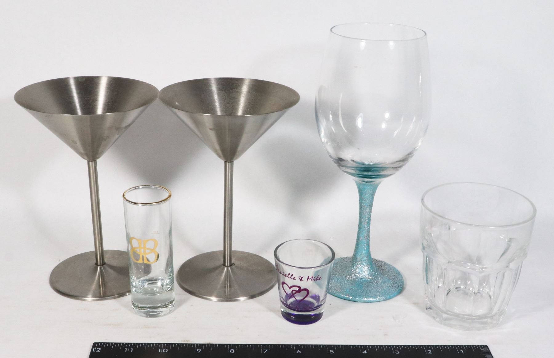 2 STEEL MARTINI GLASSES, WINE GLASS WITH GLITTER