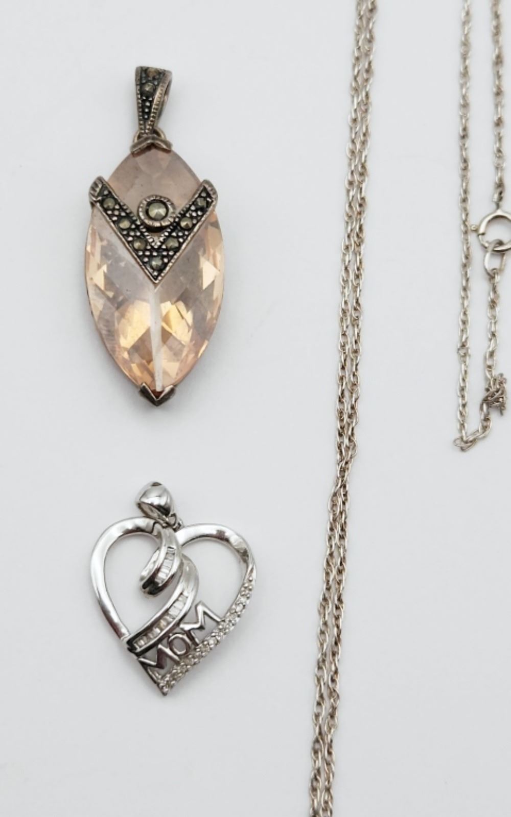 (1)MARCASITE WITH CITRINE STONE & (1)HEART MARKED "MOM" WITH CZ-CHAIN MEASURES 20 INCHES-TOTAL 9 DWT