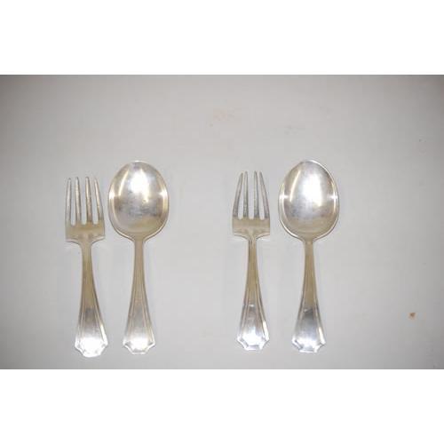 (2) STERLING SILVER BABY SETS - (1) GORHAM FAIRFAX PATTERN BABY FORK & SPOON & (1) DURGIN FAIRFAX PATTERN BABY FORK & SPOON - MINOR WEAR, SCRATCHES, IMPERFECTIONS