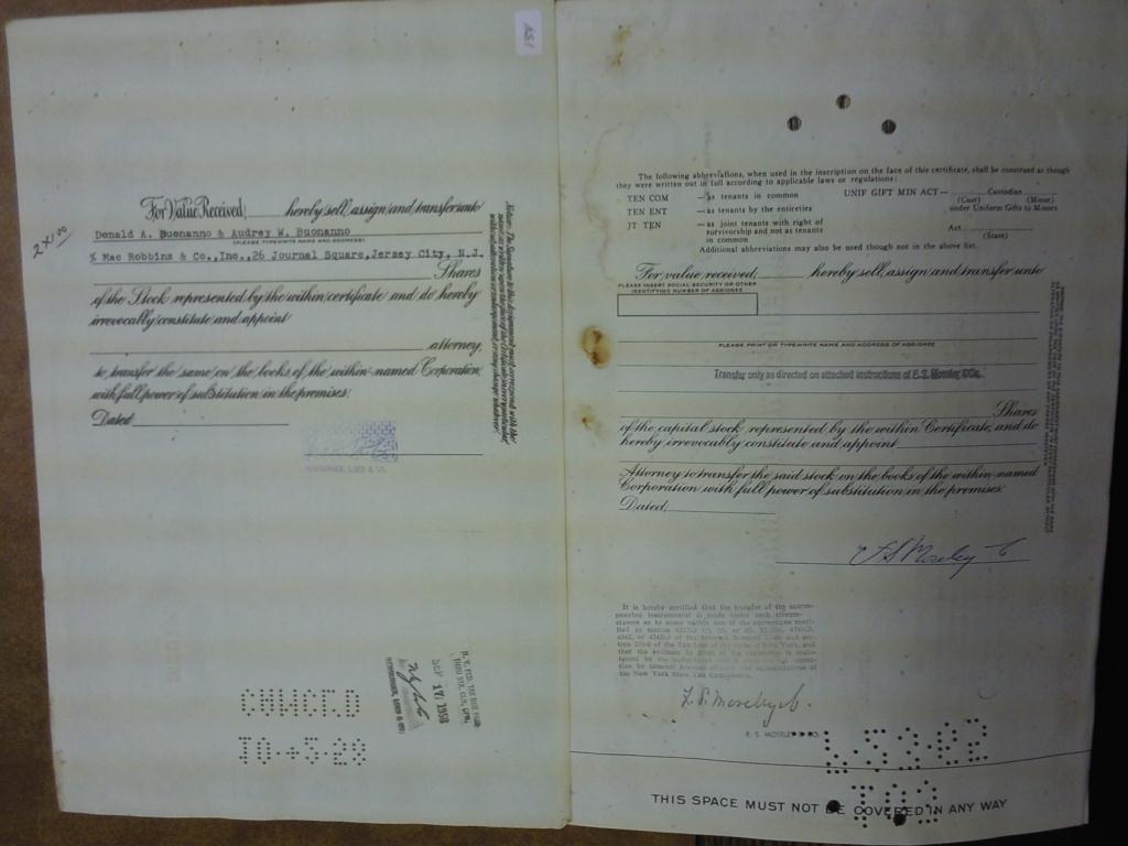 2 STOCK CERTIFICATES (AS SHOWN)