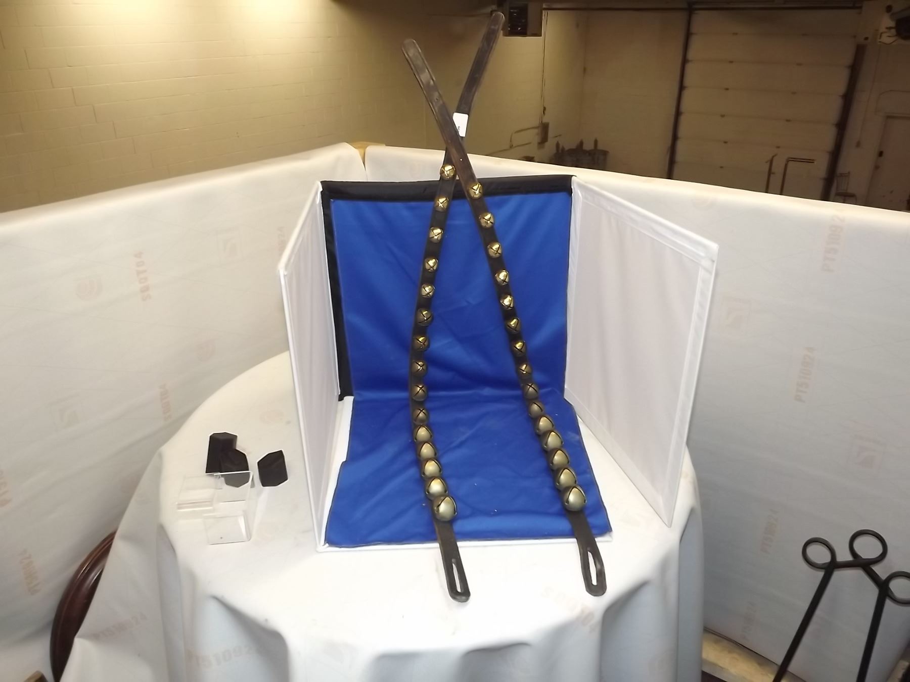 2 STRANDS SLEIGH BELLS, ANTIQUE, 15 BELLS ON EAC...