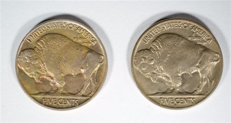 2-SUPERB GEM BU+ 1938-D BUFFALO NICKELS ESTIMATE $150 - $170.