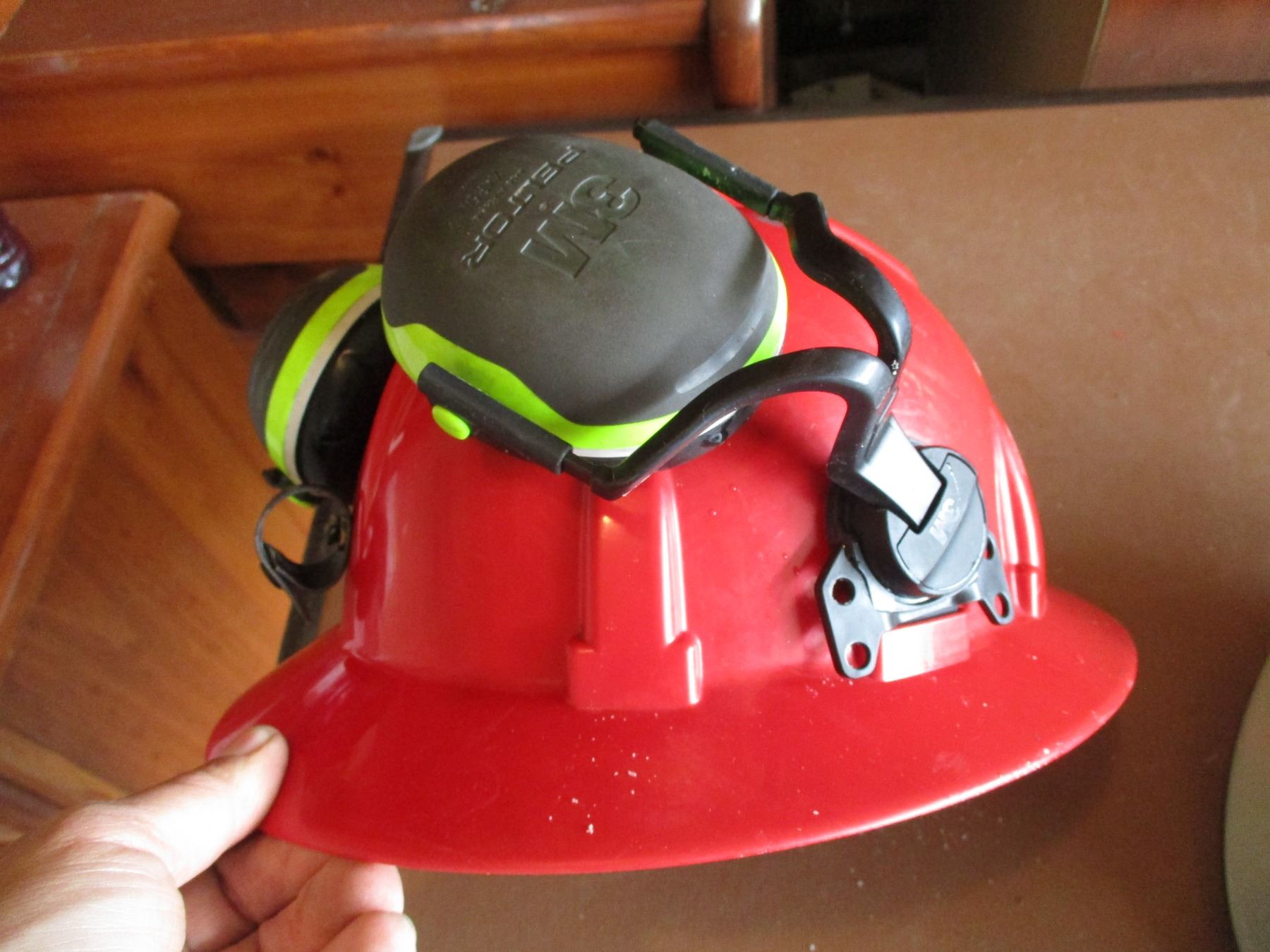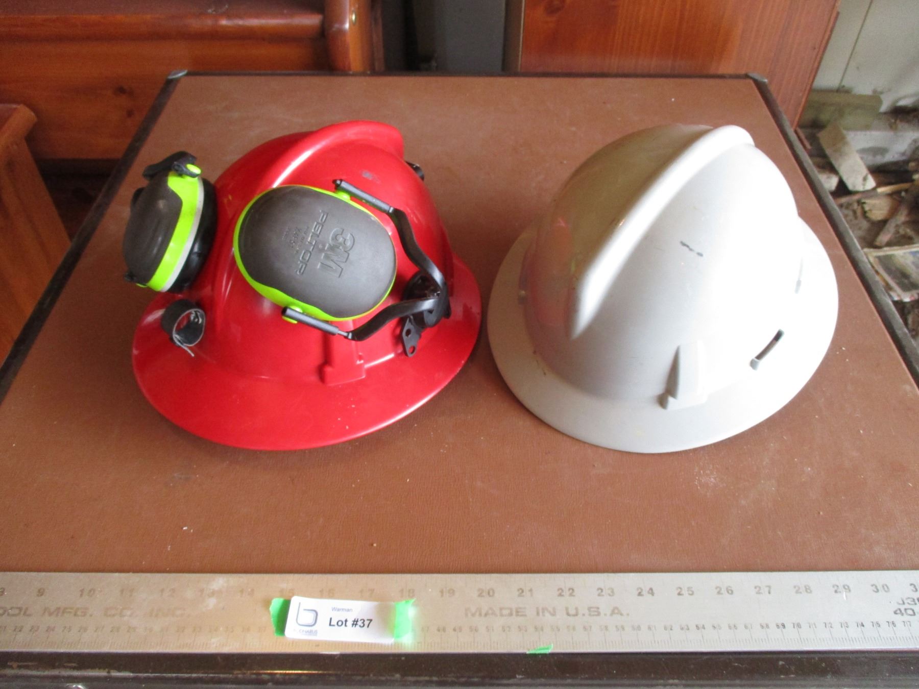 2 Safety Helmets - 1 Helmet has Ear Muffs