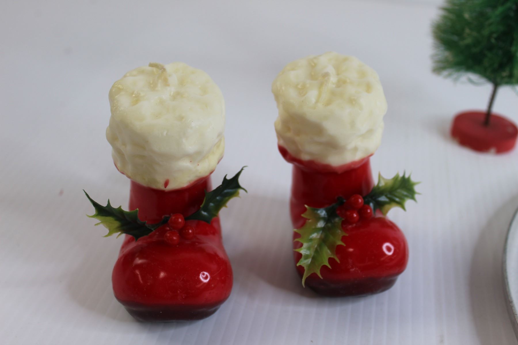 (2) Santa Boot Candles, Tree Decoration, Angel Candleholder, Leaf Serving Tray