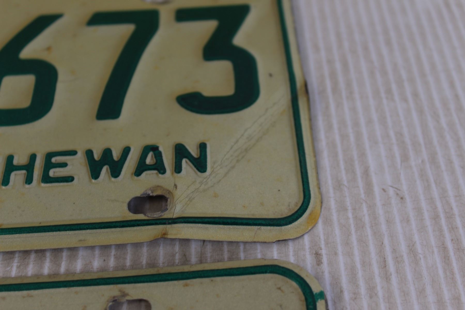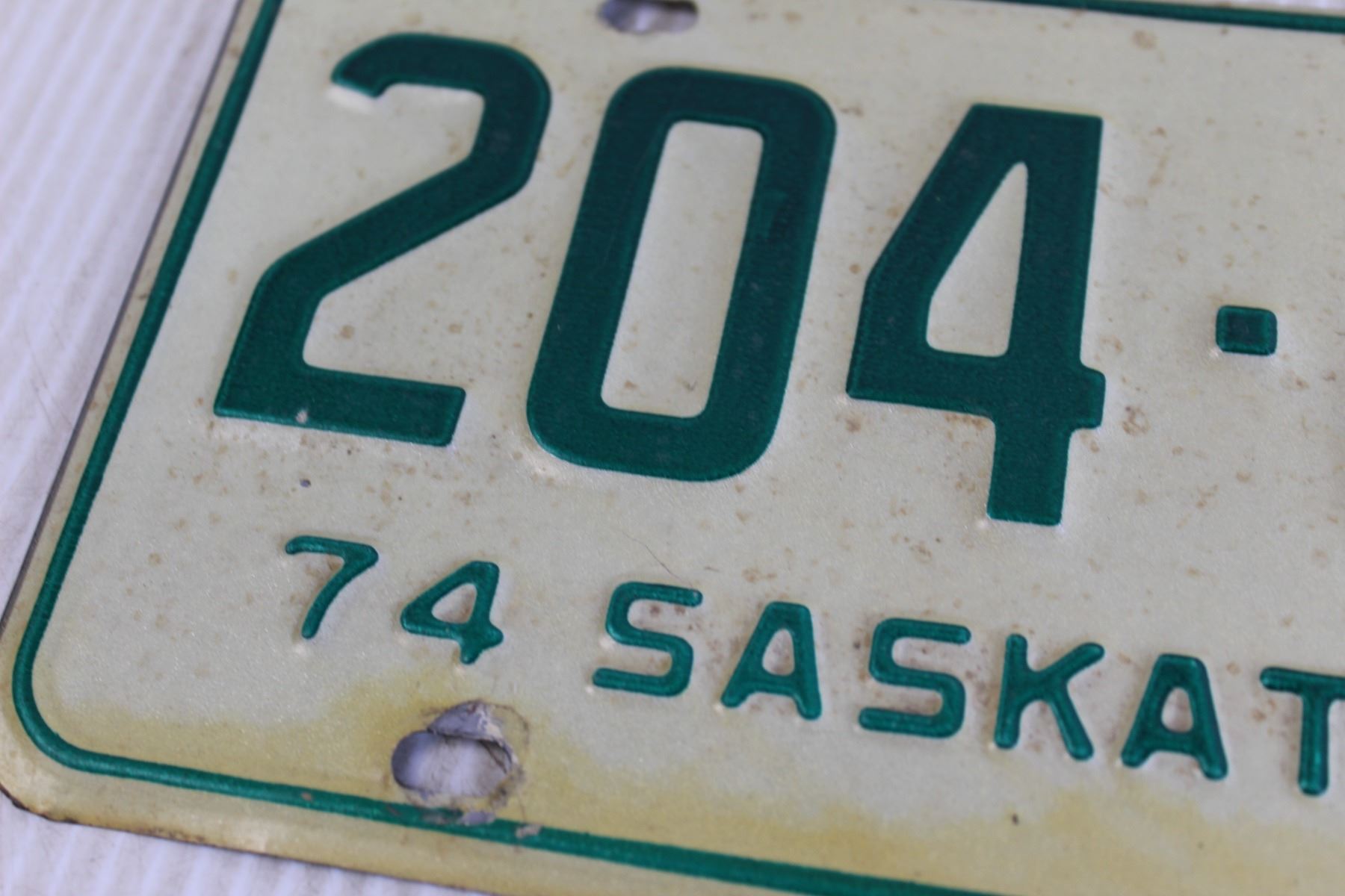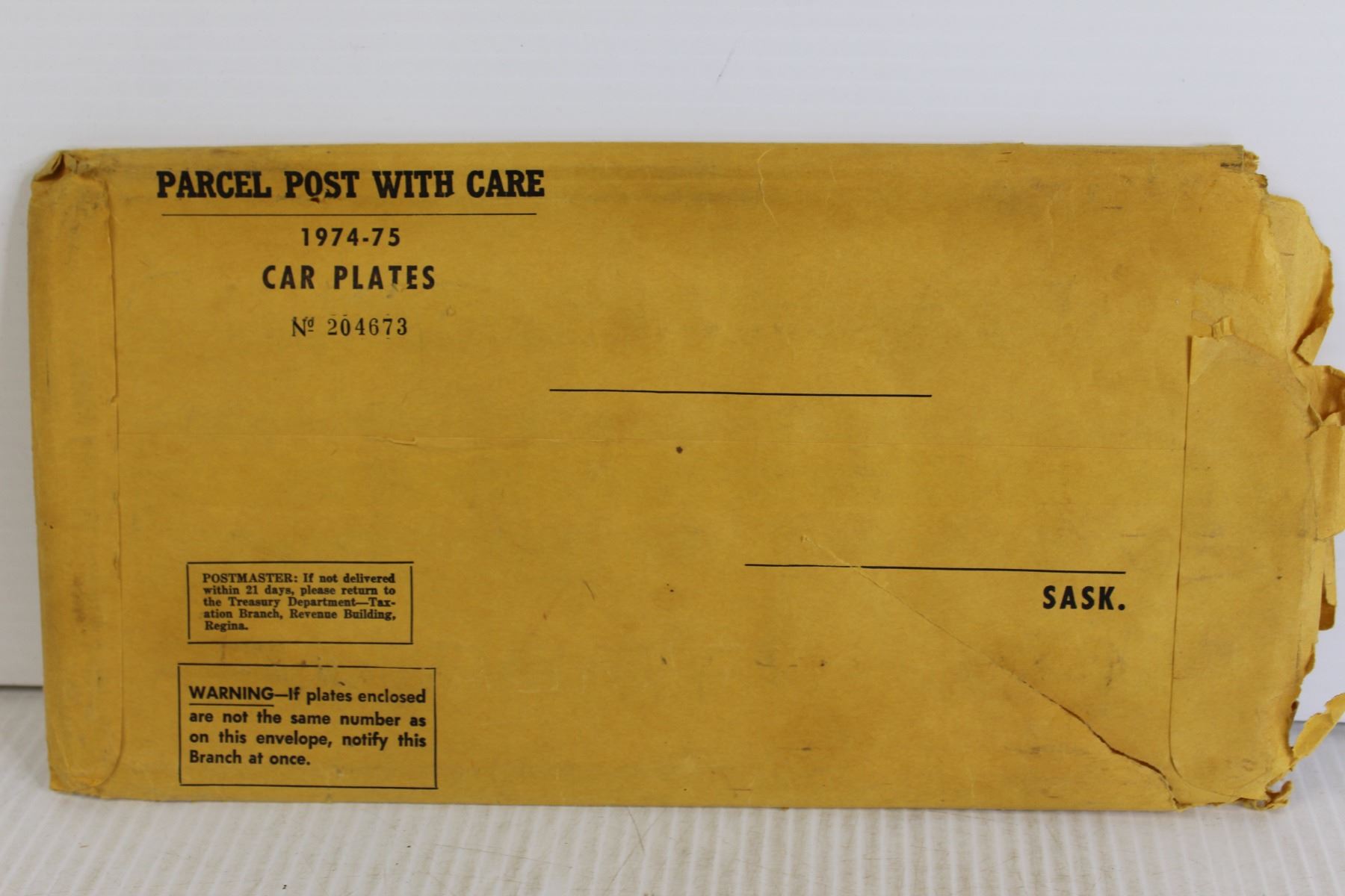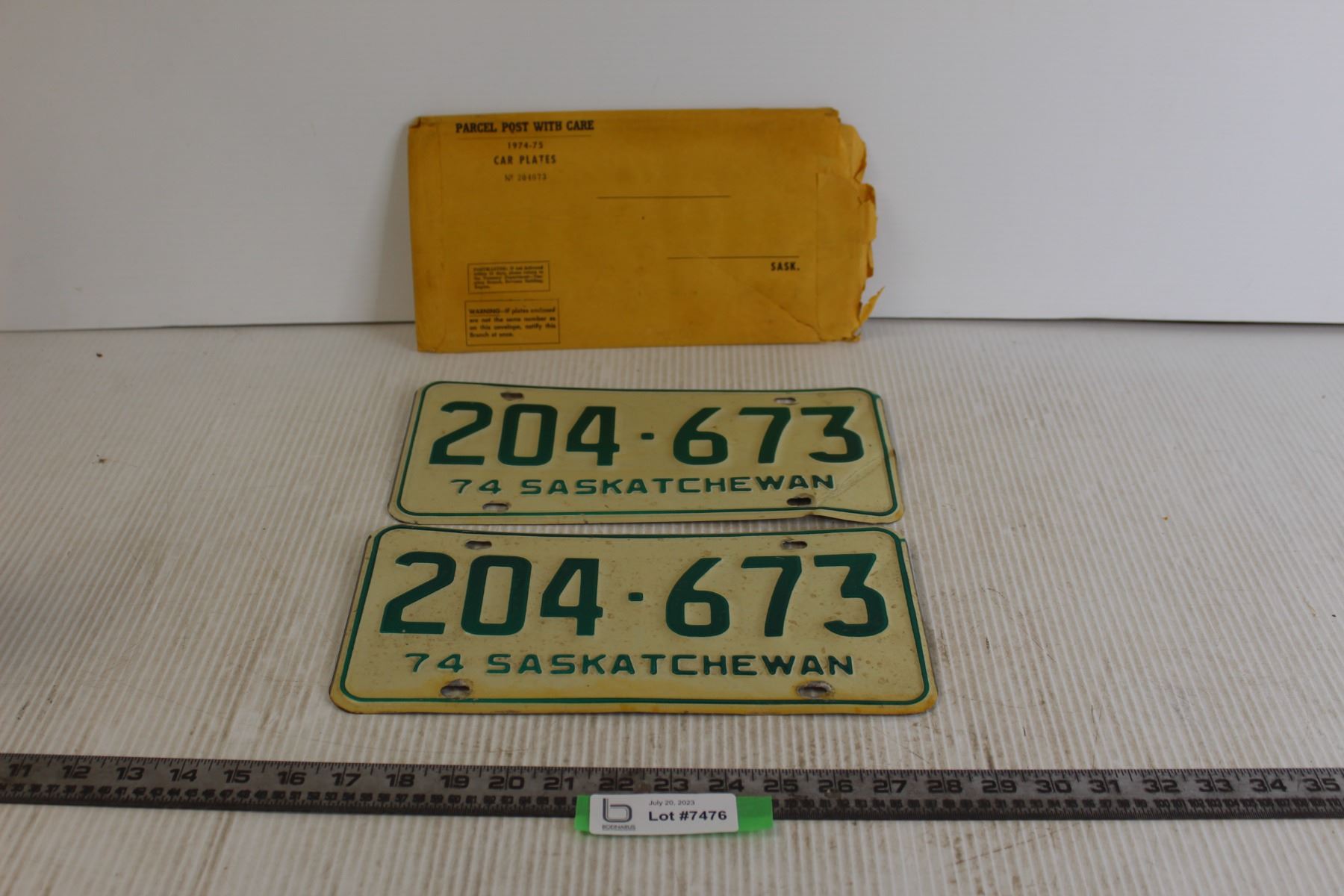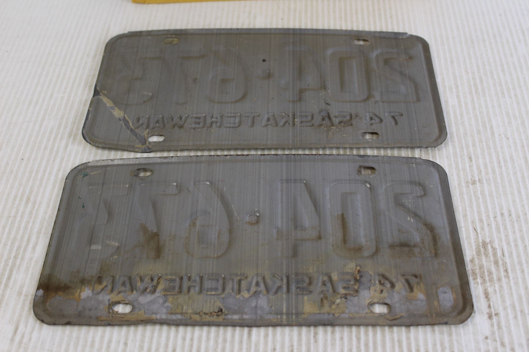 (2) Saskatchewan 1974 License Plates (with Mailing Envelope)