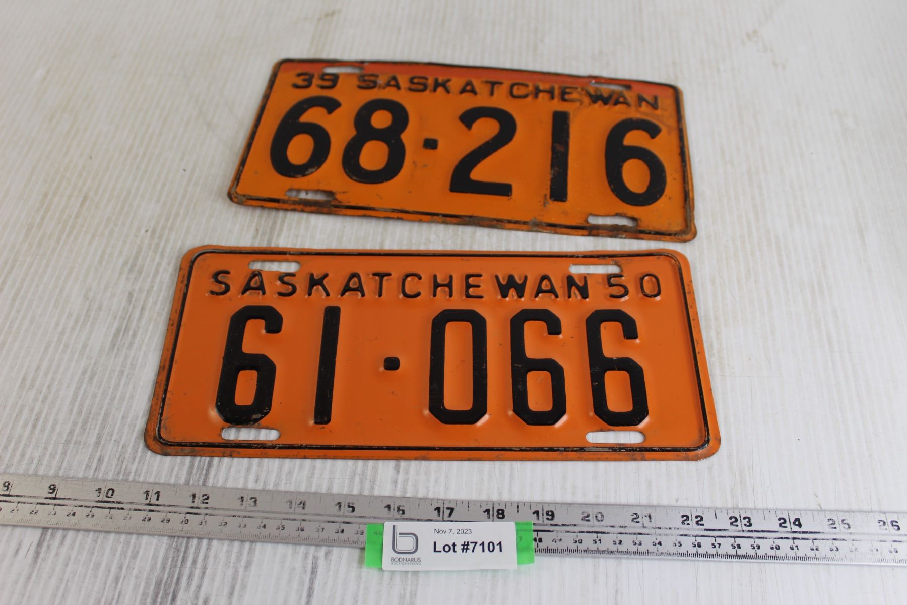 (2) Saskatchewan License Plates - 1939 and 1950