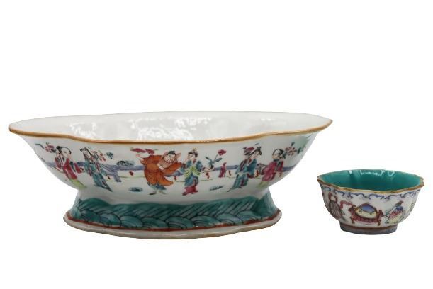 One bowl and one cup in this lot. Cup has stamp underneath.