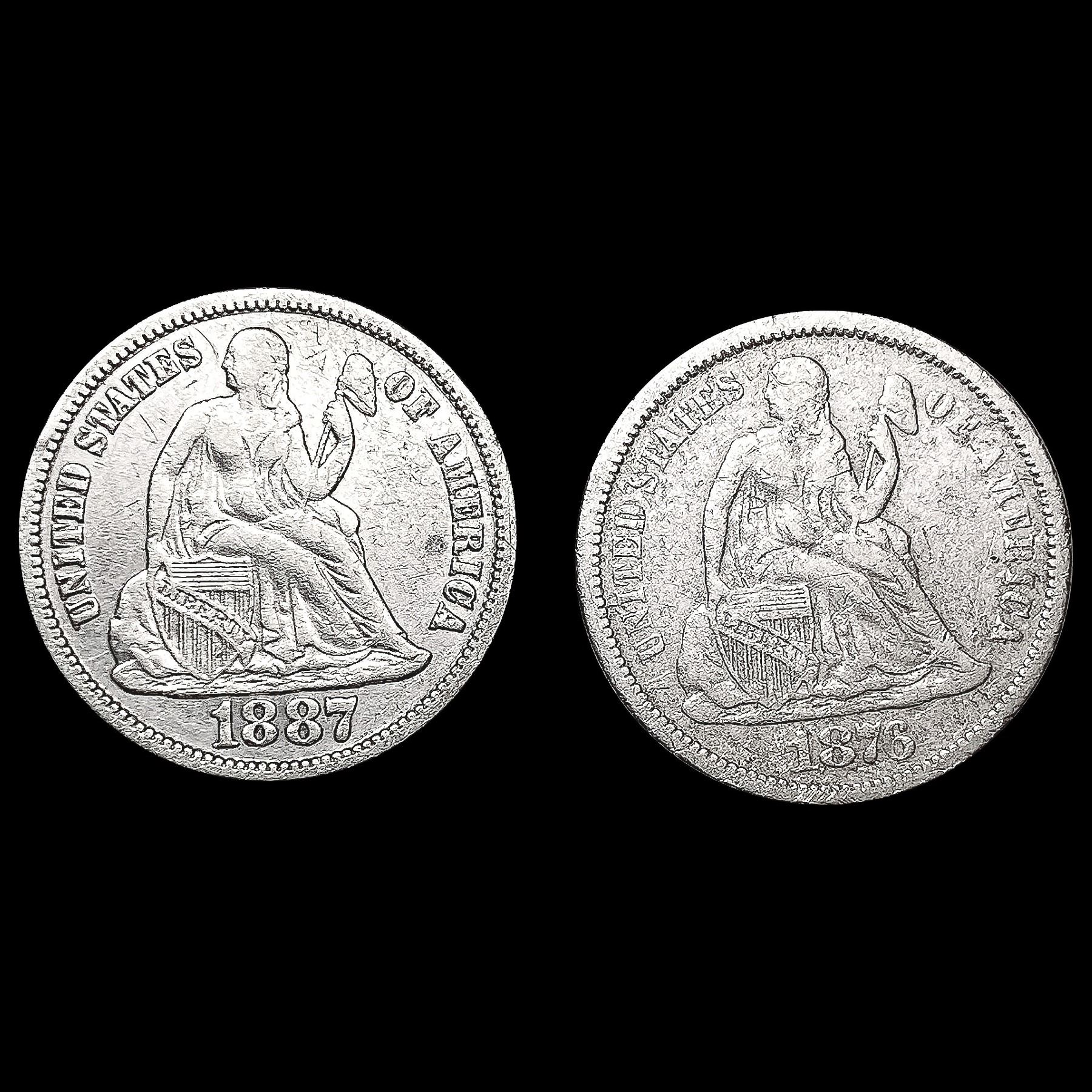 [2] Seated Lib Dimes [1876, 1887-S] CLOSELY UNCIRC