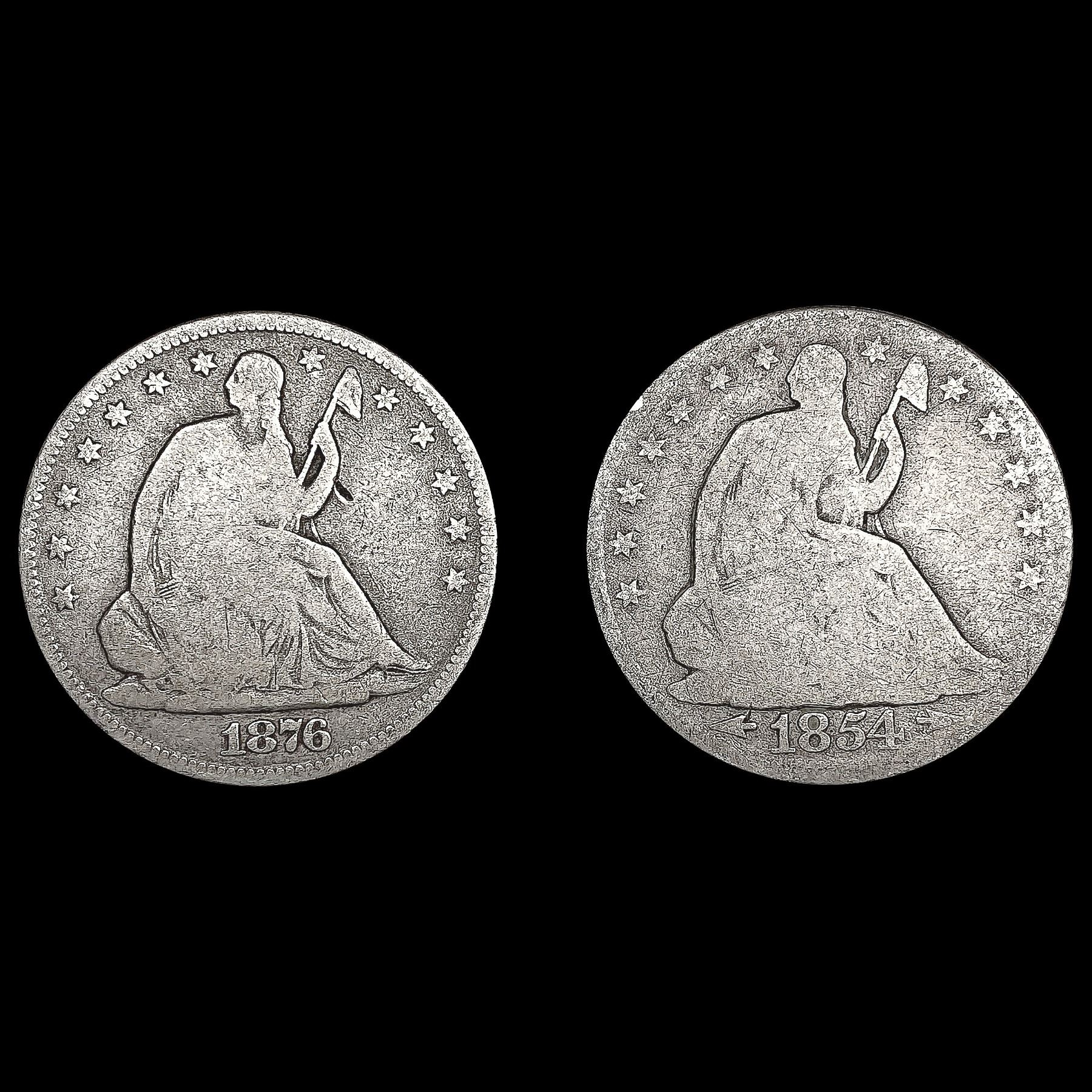 [2] Seated Lib Half Dollars [1854, 1876] NICELY CI