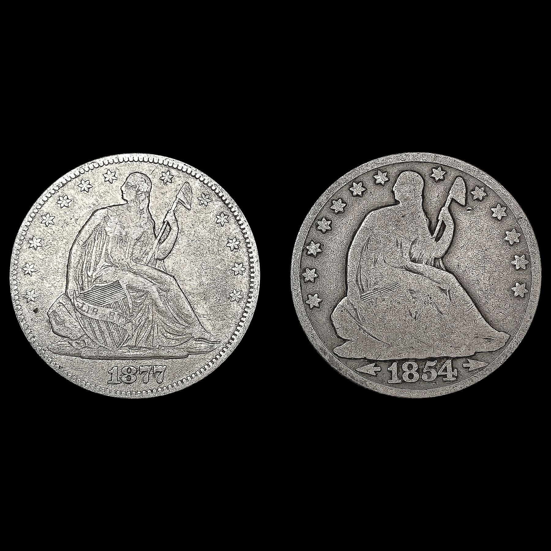 [2] Seated Lib Half Dollars [1854-O, 1877] NICELY
