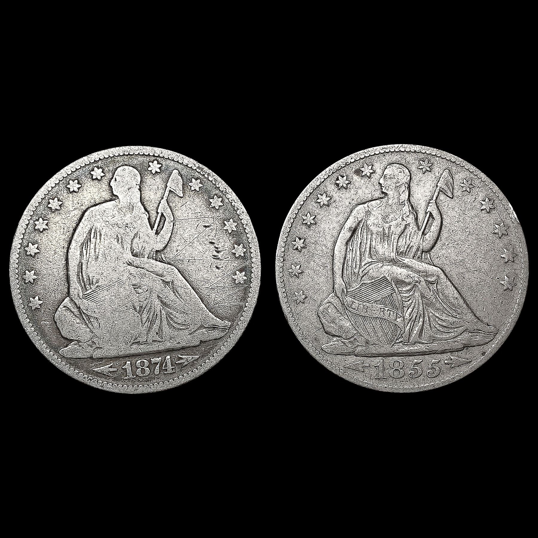 [2] Seated Lib Half Dollars [1855-O, 1874] NICELY