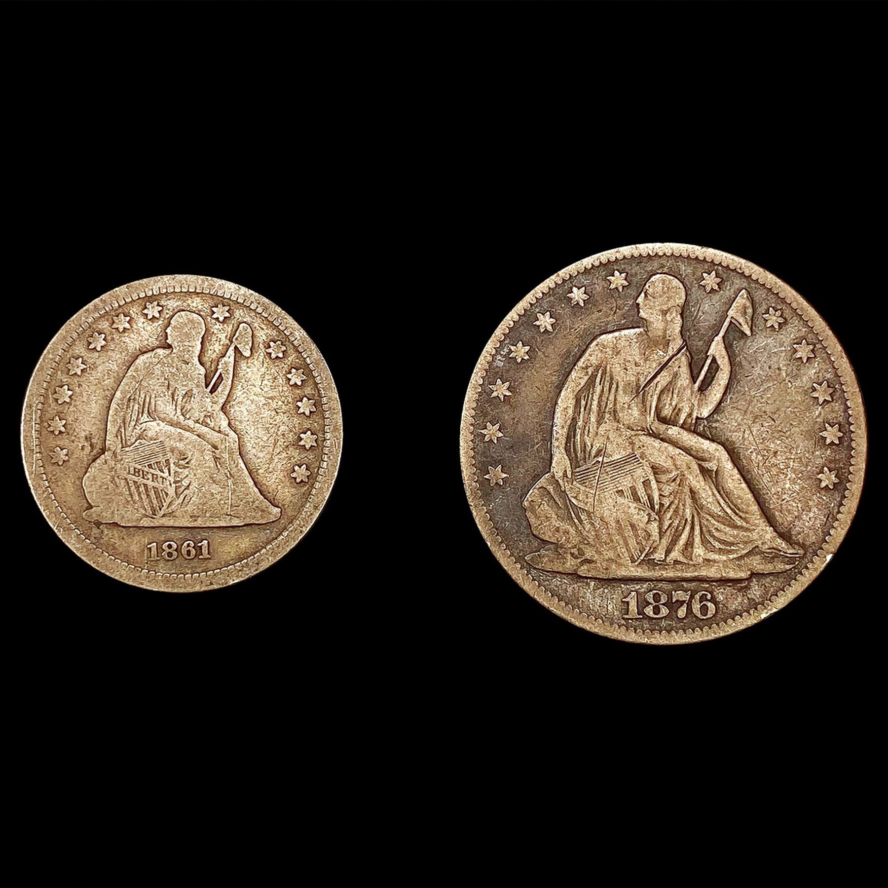 (2) Seated Liberty Coinage (1861, 1876) LIGHTLY CI