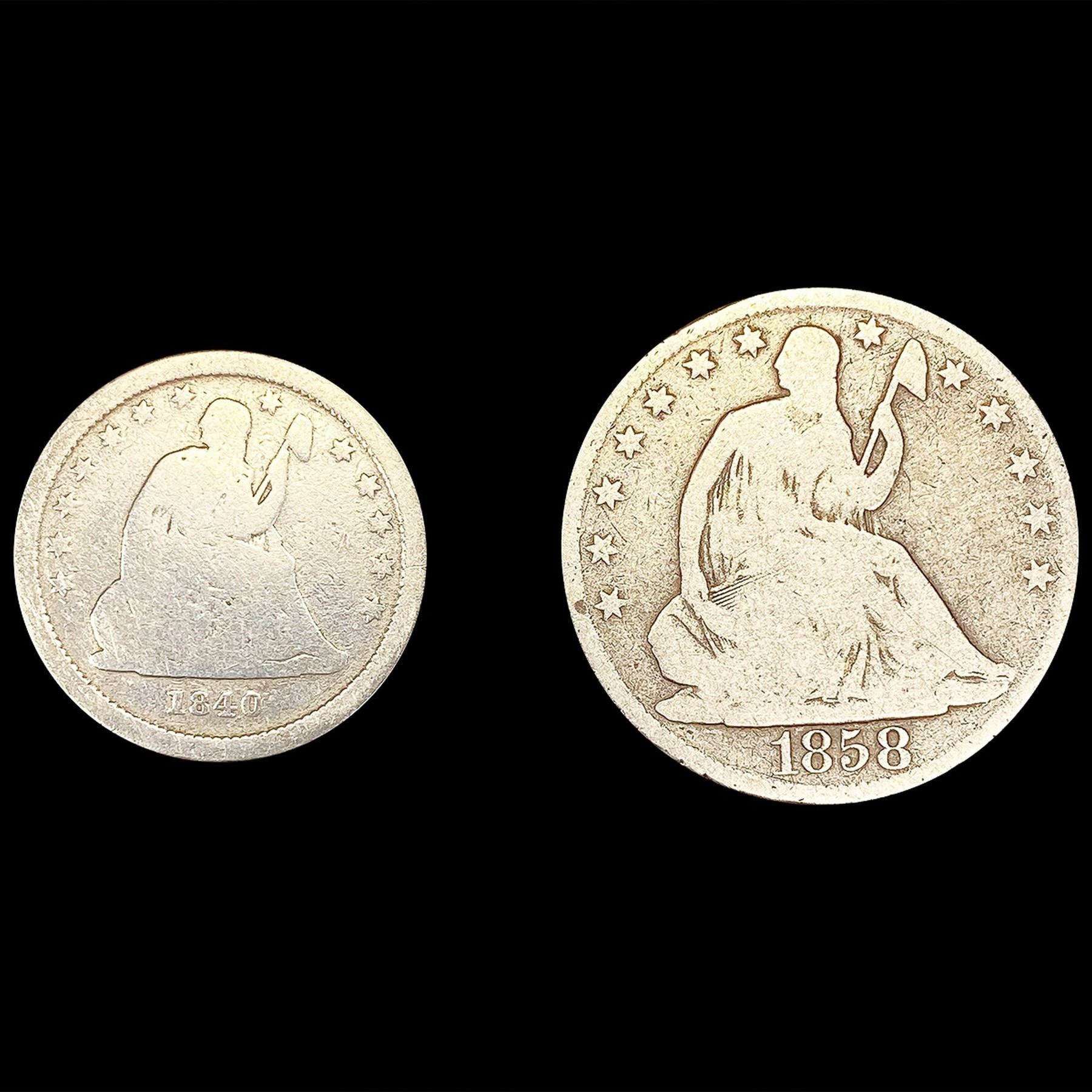 [2] Seated Liberty Type Coins (1840-O, 1858-O) NIC