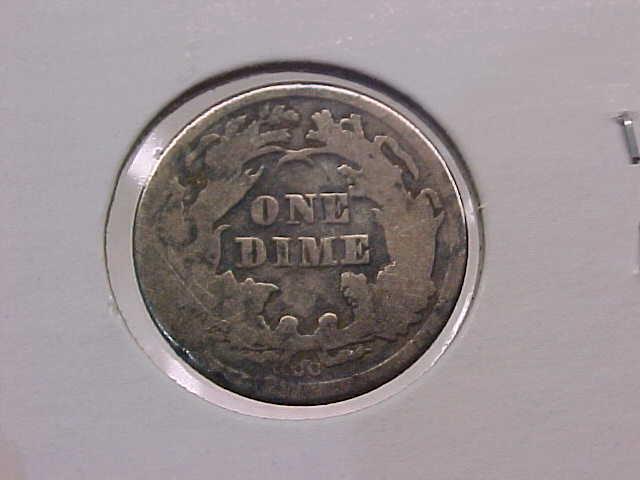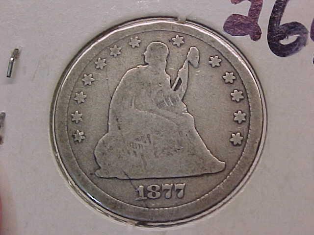 2 Seated Liberty: Dime 1876CC G toned, 1877 Quarter G