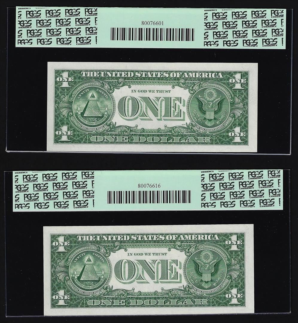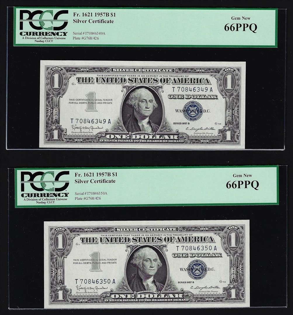 (2) Sequential 1957B $1 Silver Certificate Notes PCGS Gem New 66PPQ