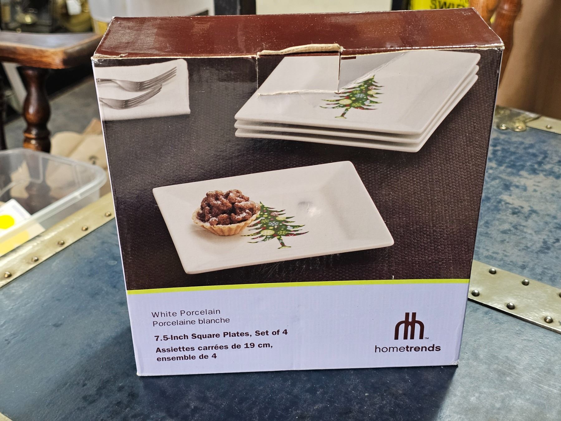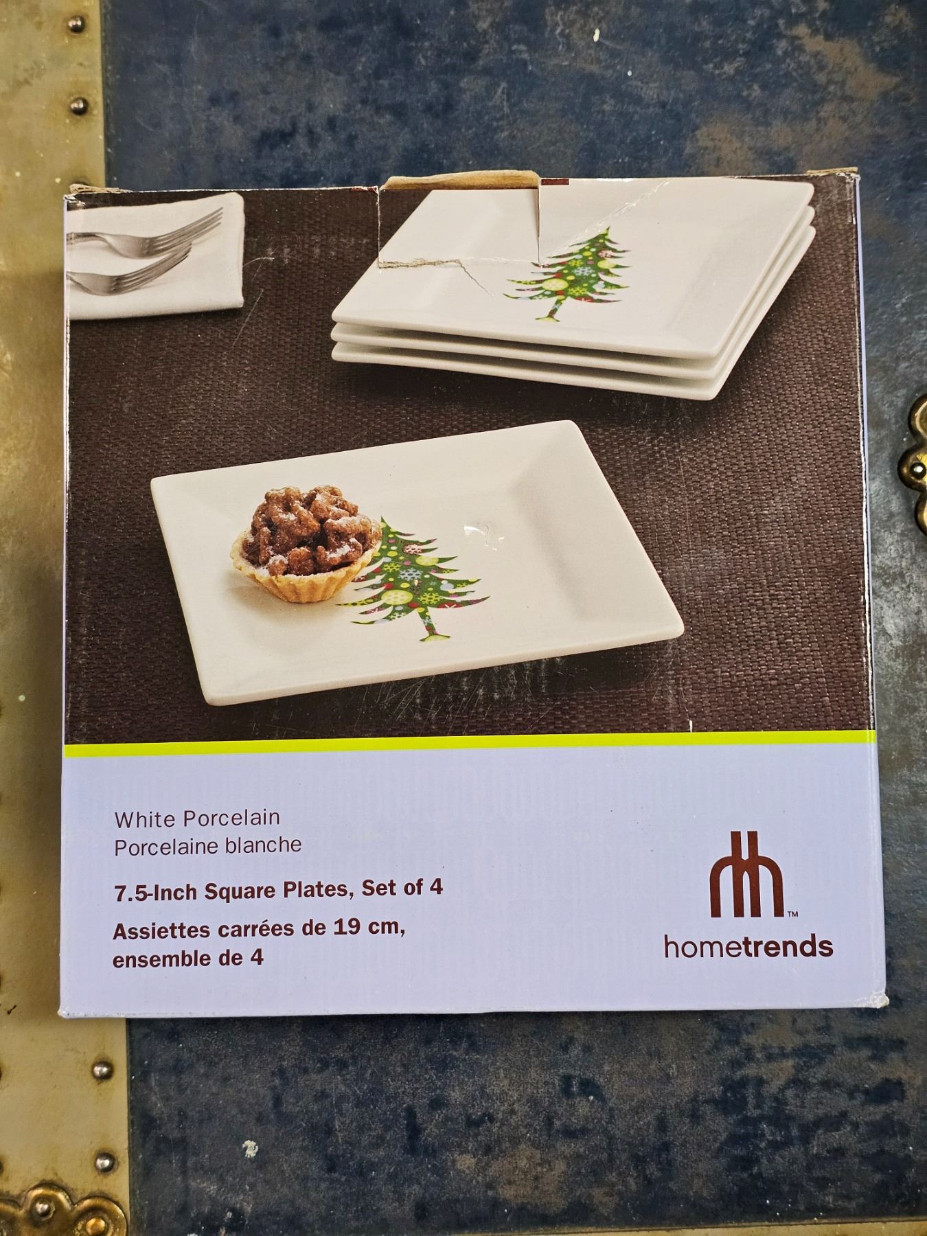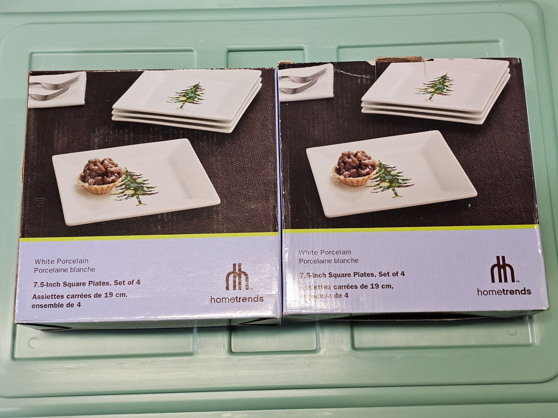 (2) Sets 7.5" Square White Porcelain Plates. 4 per set. Unused in Box