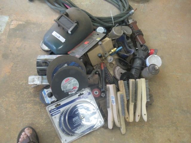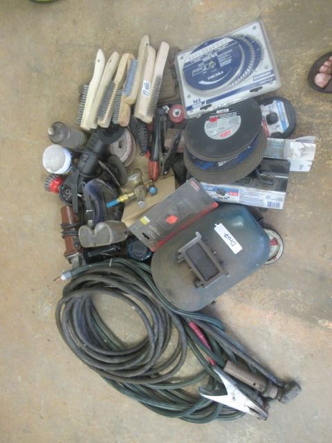 2 Sets Welding Cable, Welding Mask, 2) Angle Grinders, Discs, Wire Brushes, & CO2 Regulator