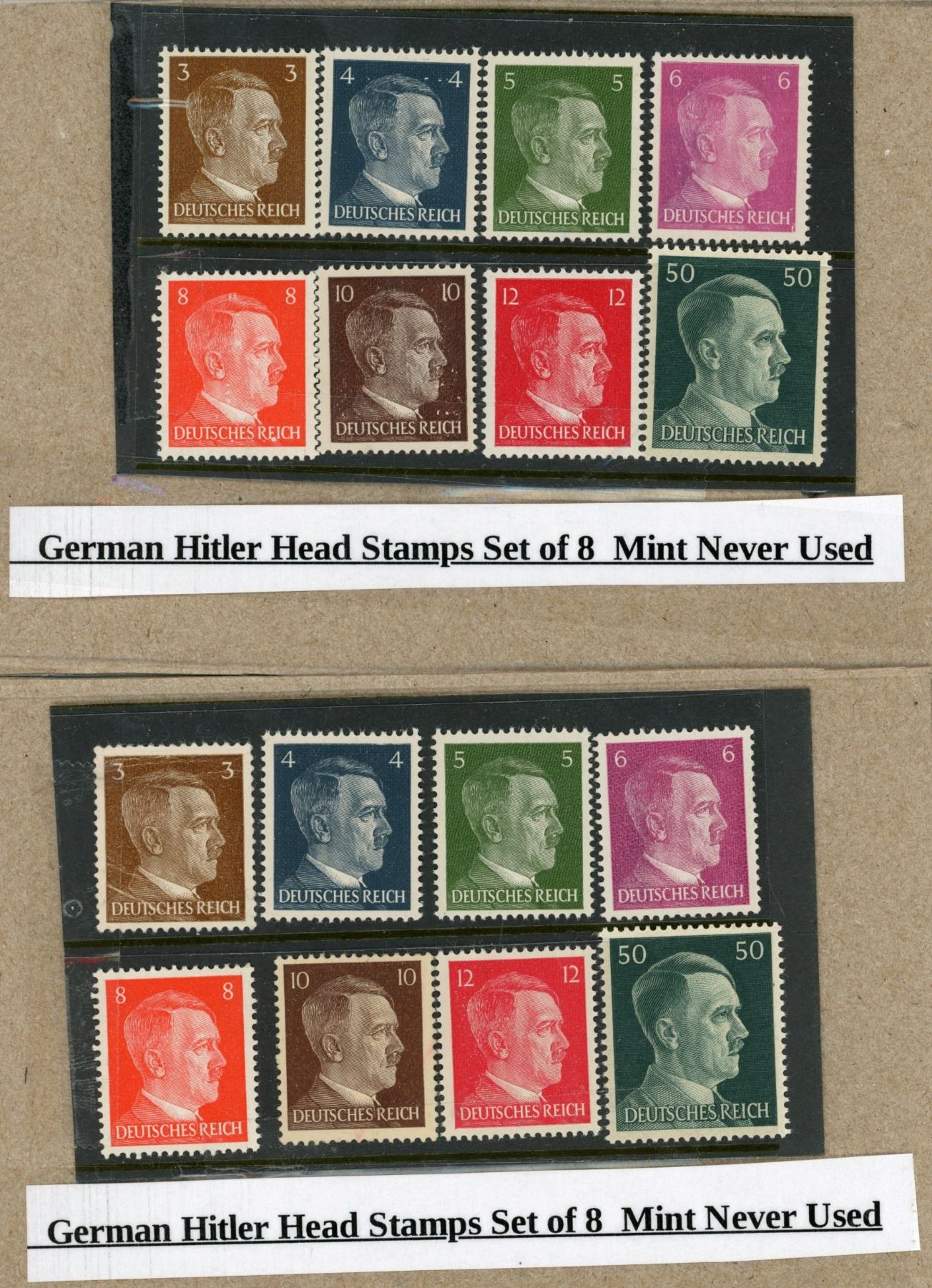 2 Sets of 8 German Hitler head stamps (mint, never used)