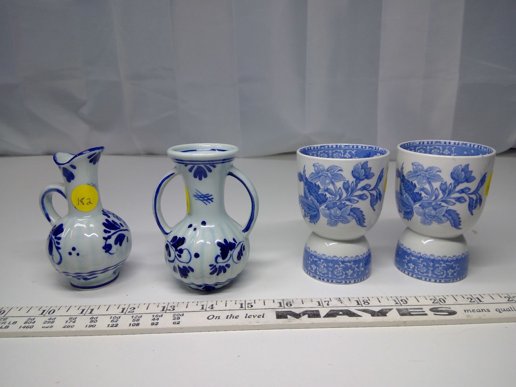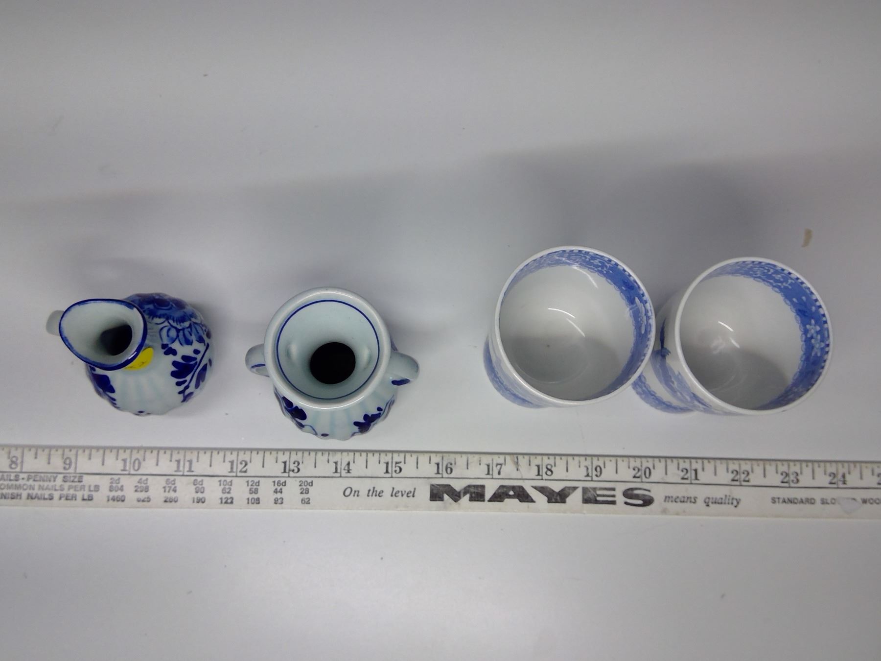 2 Sets of Blue Hand Painted Ceramics - Mini Vases, Cups
