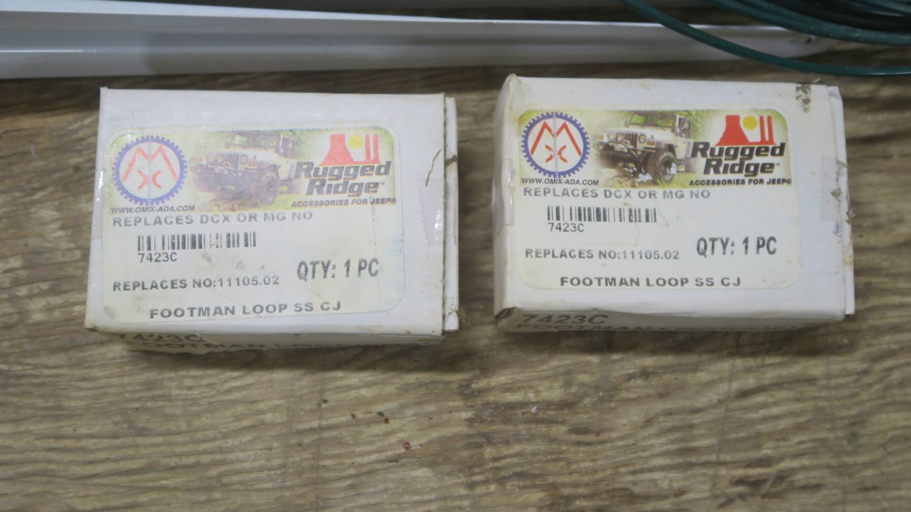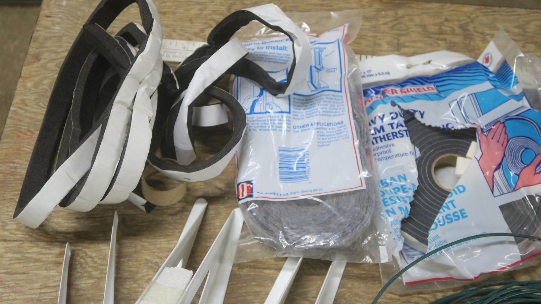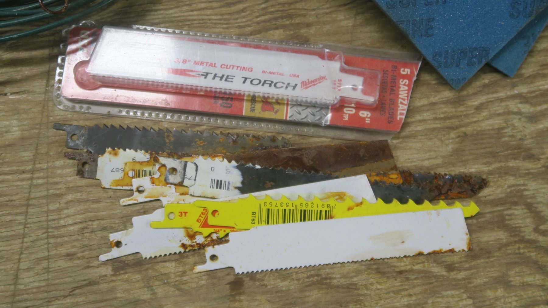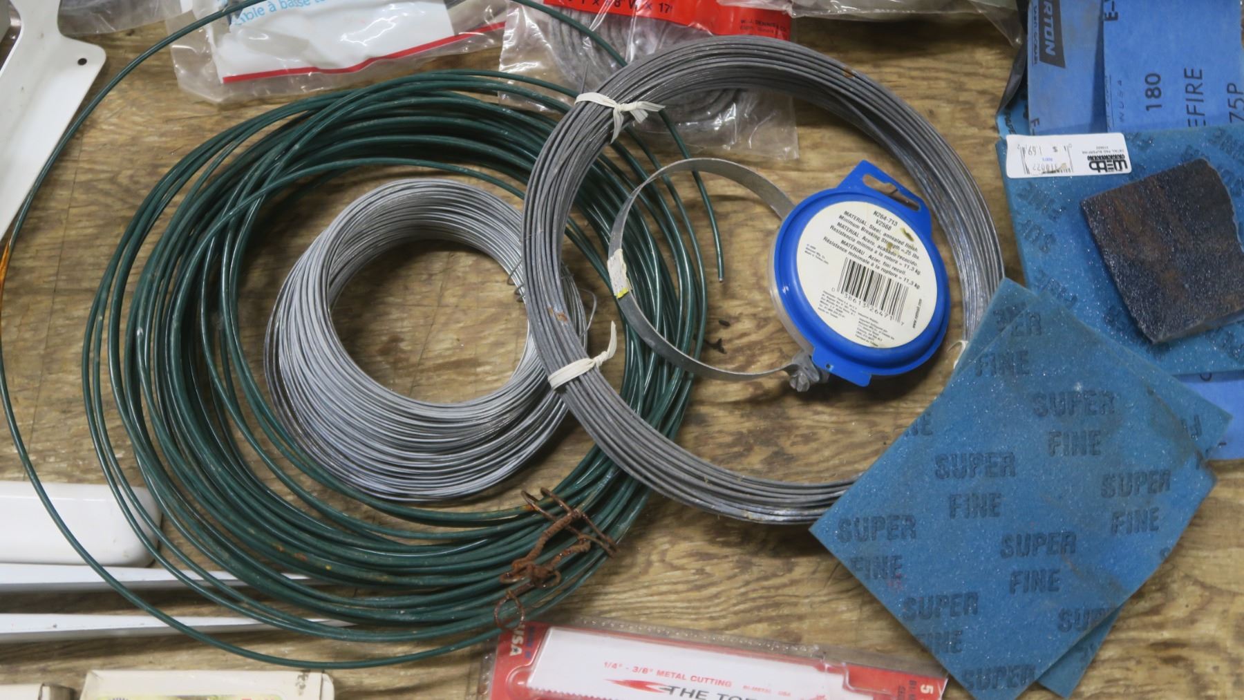 2 Sets of Brackets / Various Weather Strip - New in Package / Various Rolls of Steel Line / Sawzall Blades / 2 x Footman Loop / Various Wire