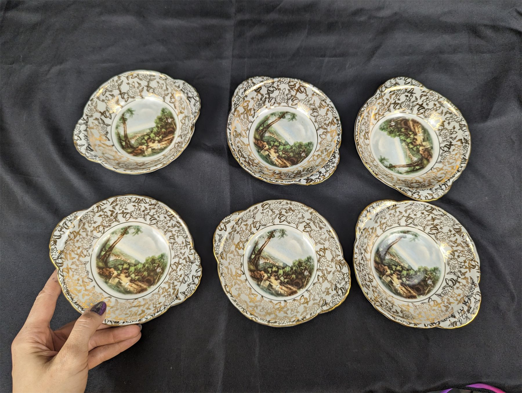 Set of 6 Nelson Ware Bowls "Crossing the Brook"