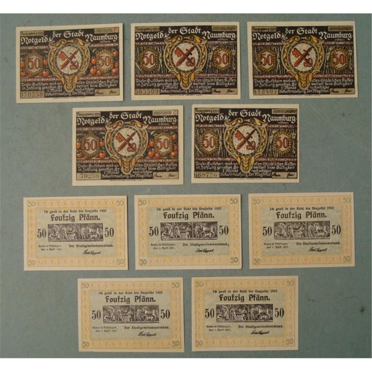 2 Sets of (5 each) Old German Paper Money 50 Pfennig 1921 UNC * 10 Different Uncirculated Pieces
