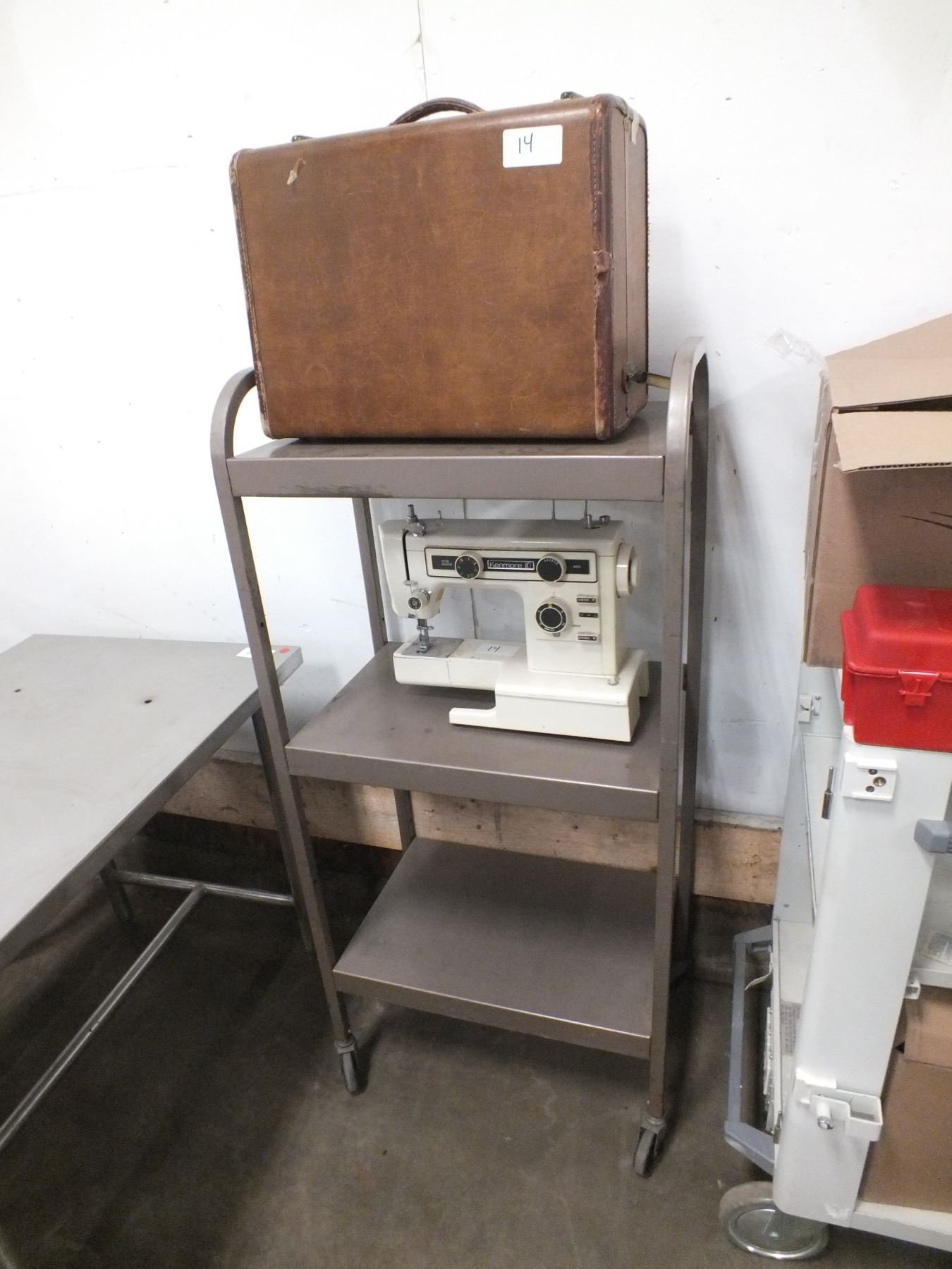 2 Sewing Machines and a cart on wheels, 1 machine no cord...used