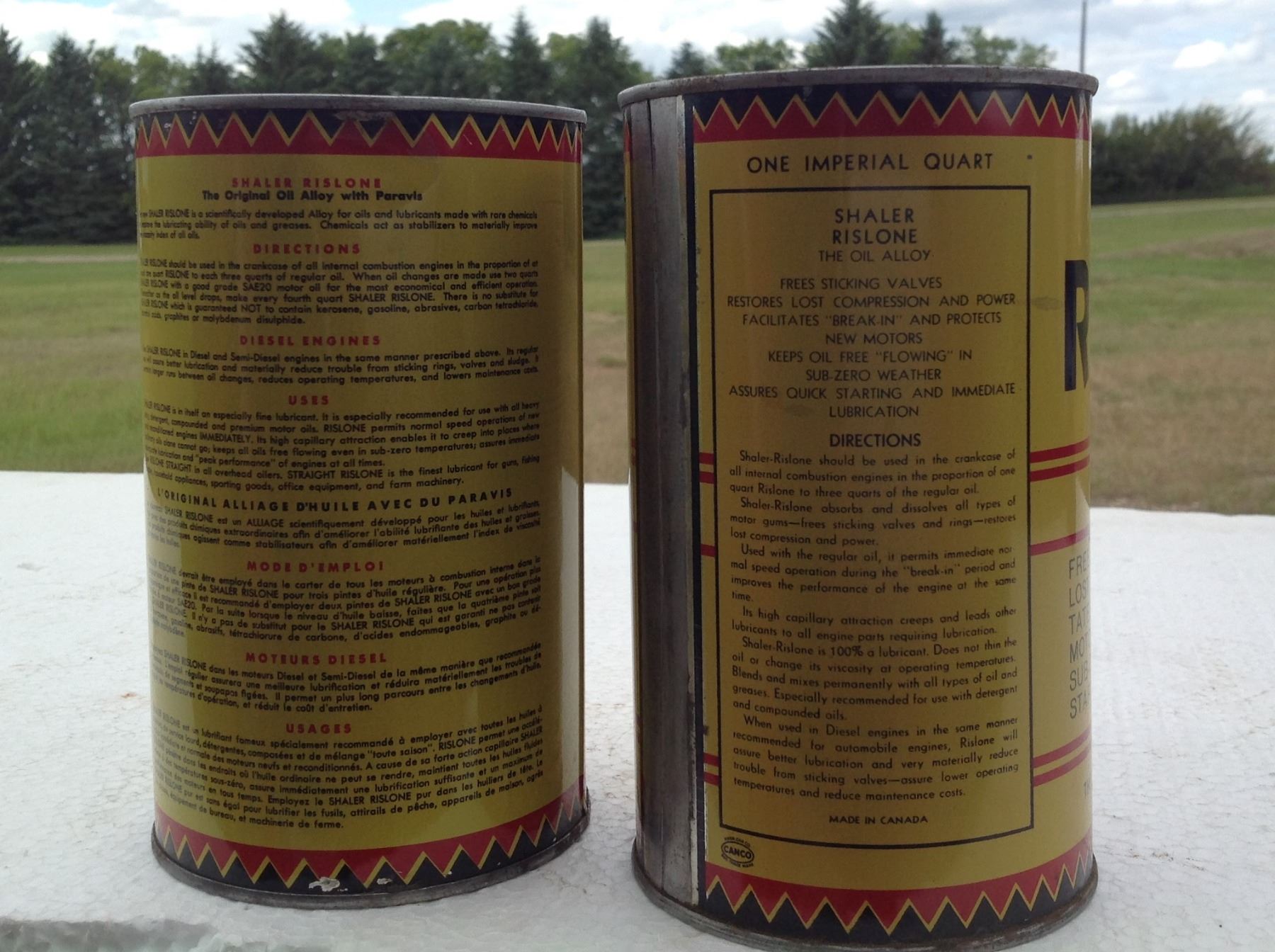(2) Shaler Ristone Oil Additive Early (One Has Solder Seam A)