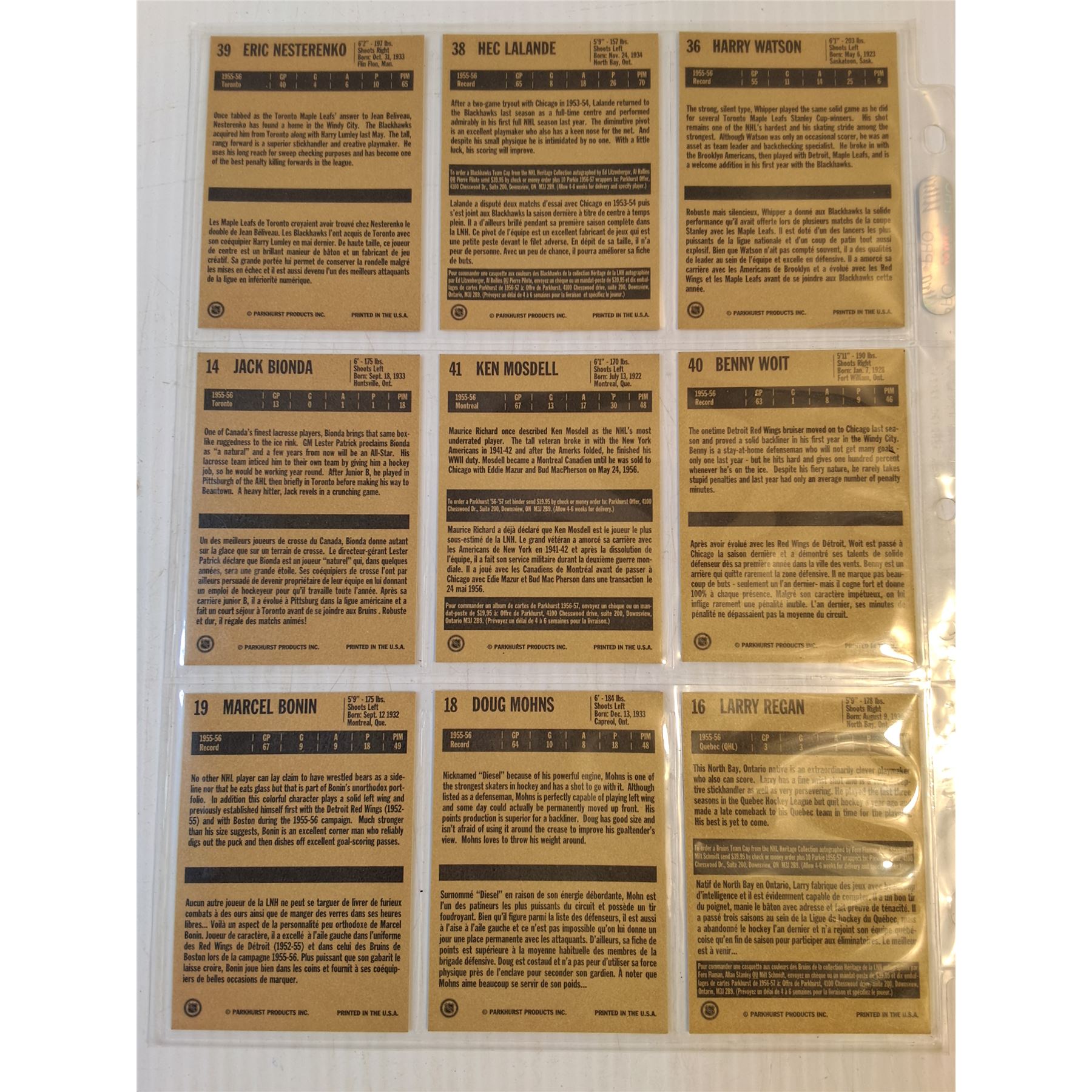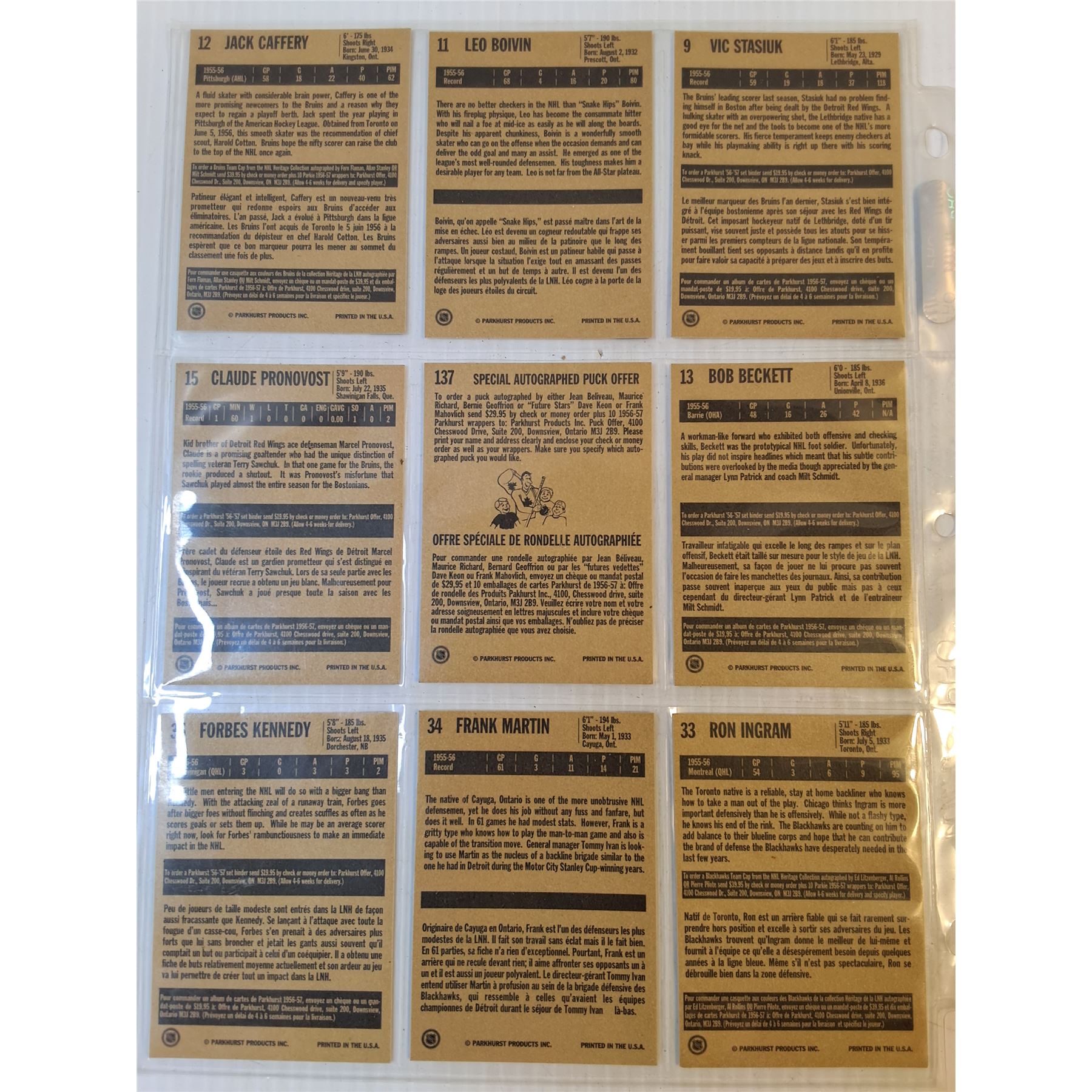 (2) Sheets of Parkhurst Hockey Cards Featuring Chicago and Boston