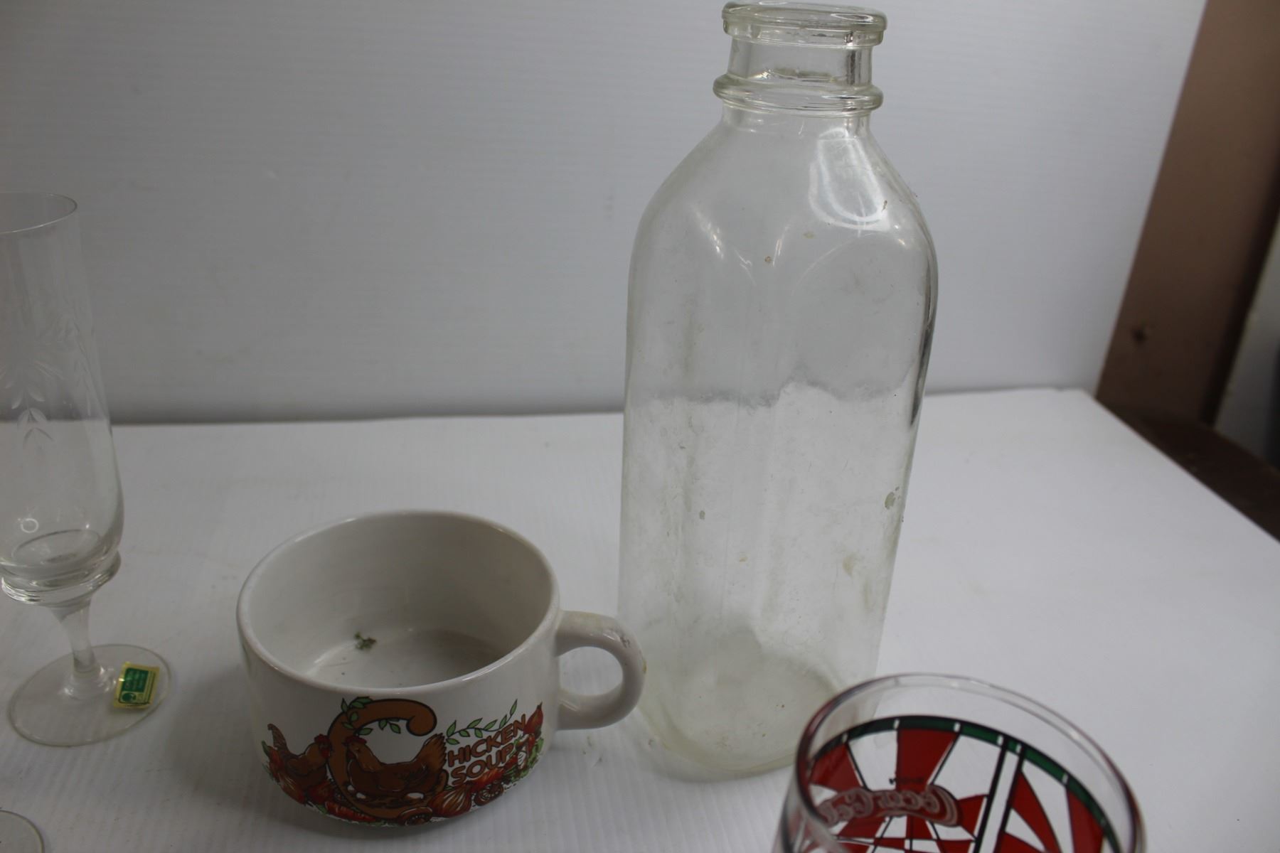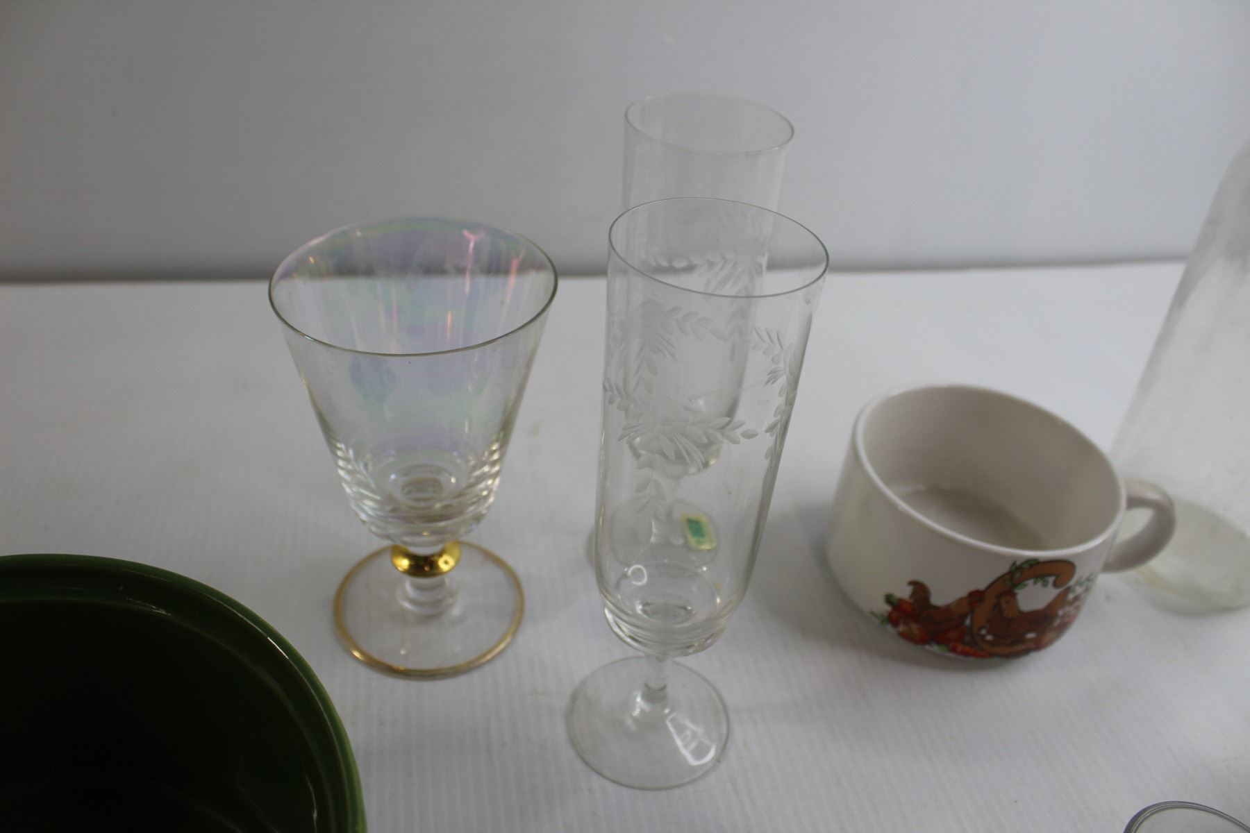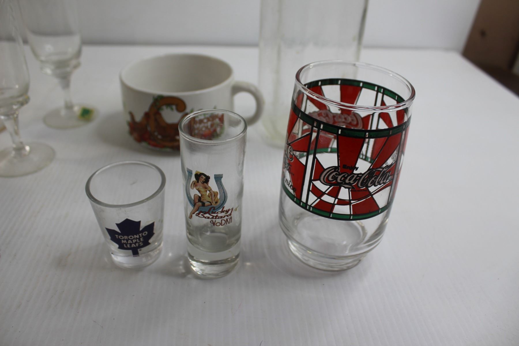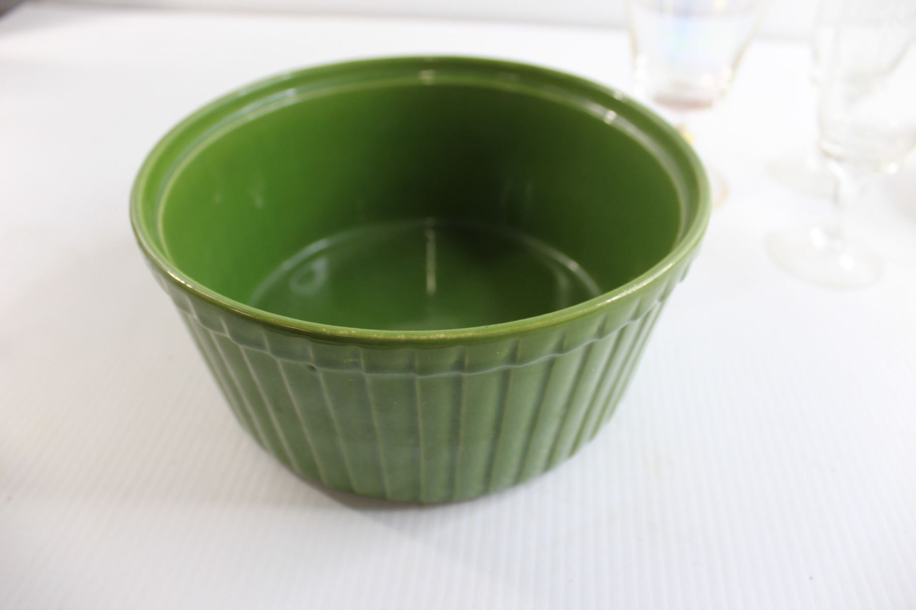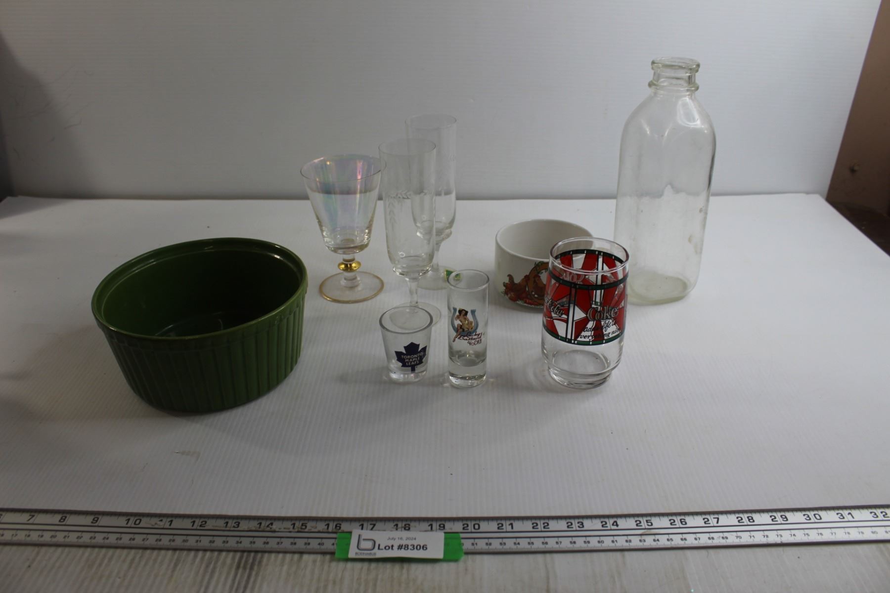 (2) Shot Glasses, Green Bowl, Assorted Kitchenware