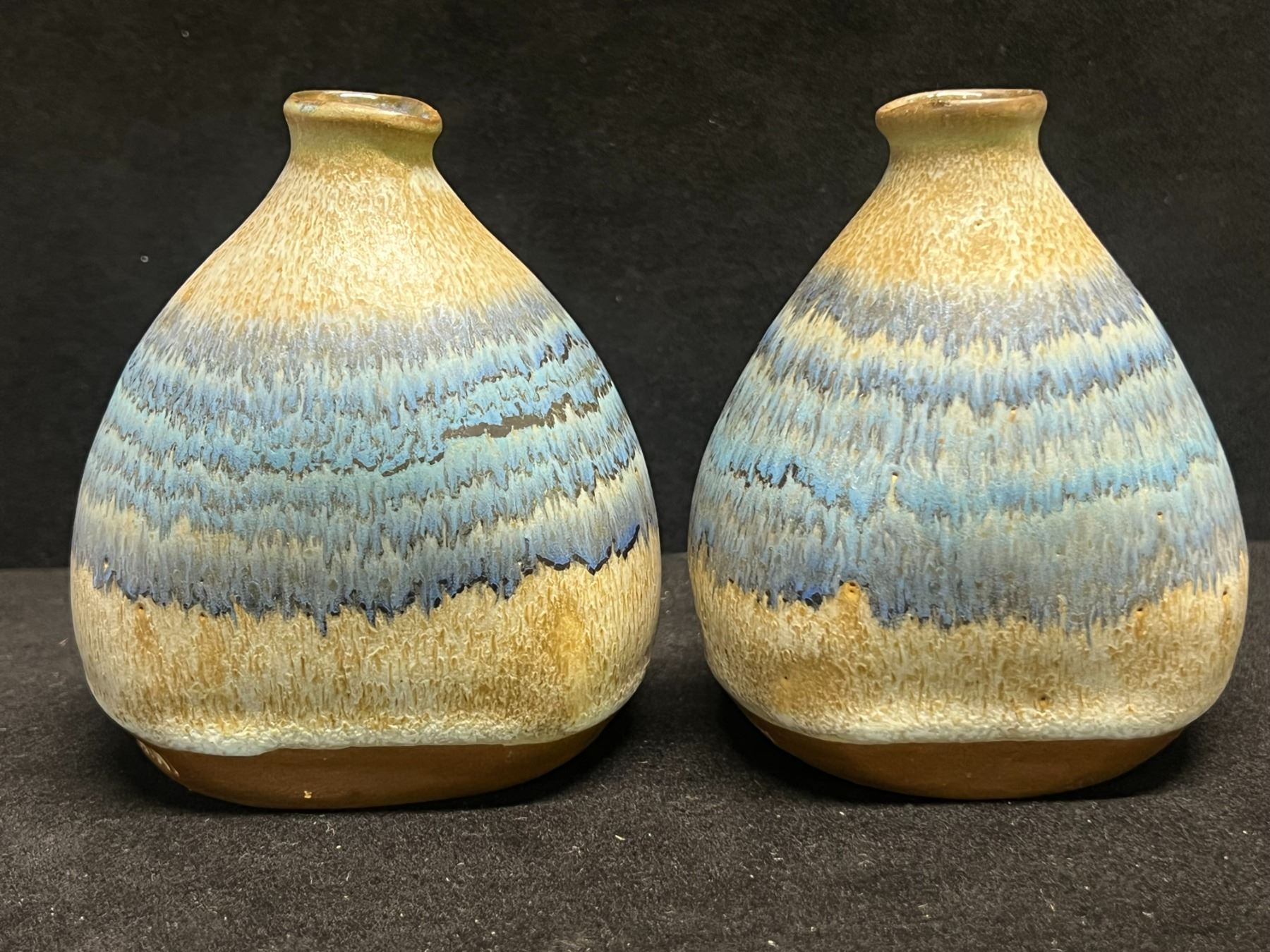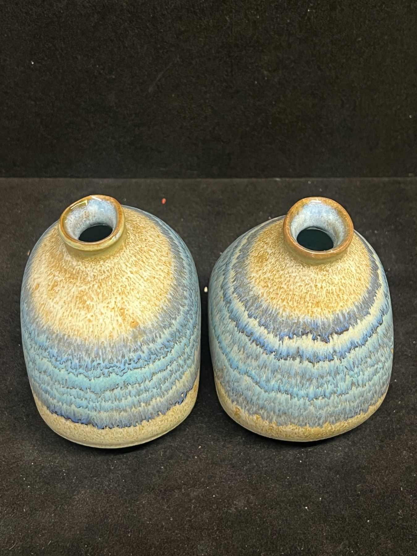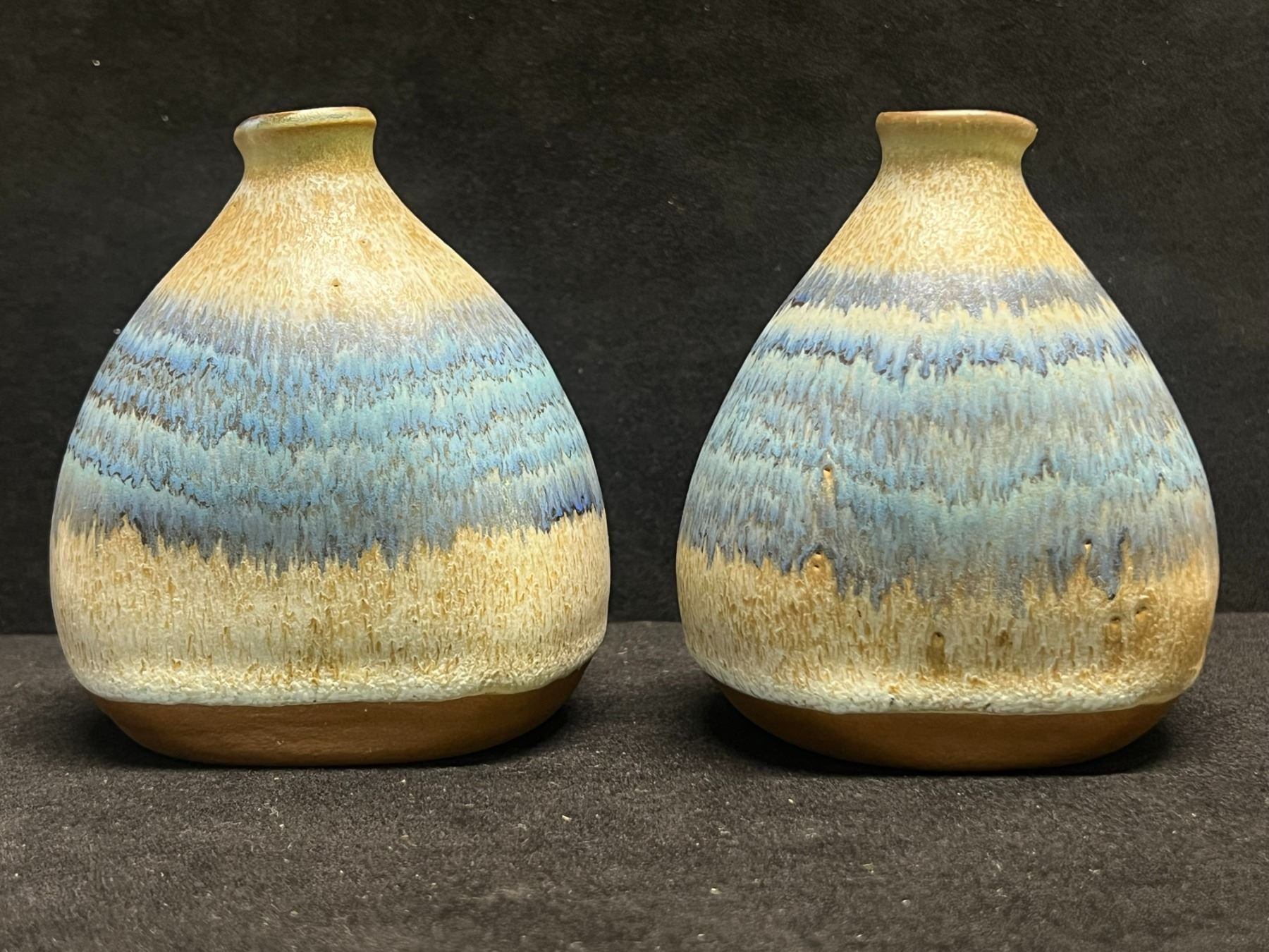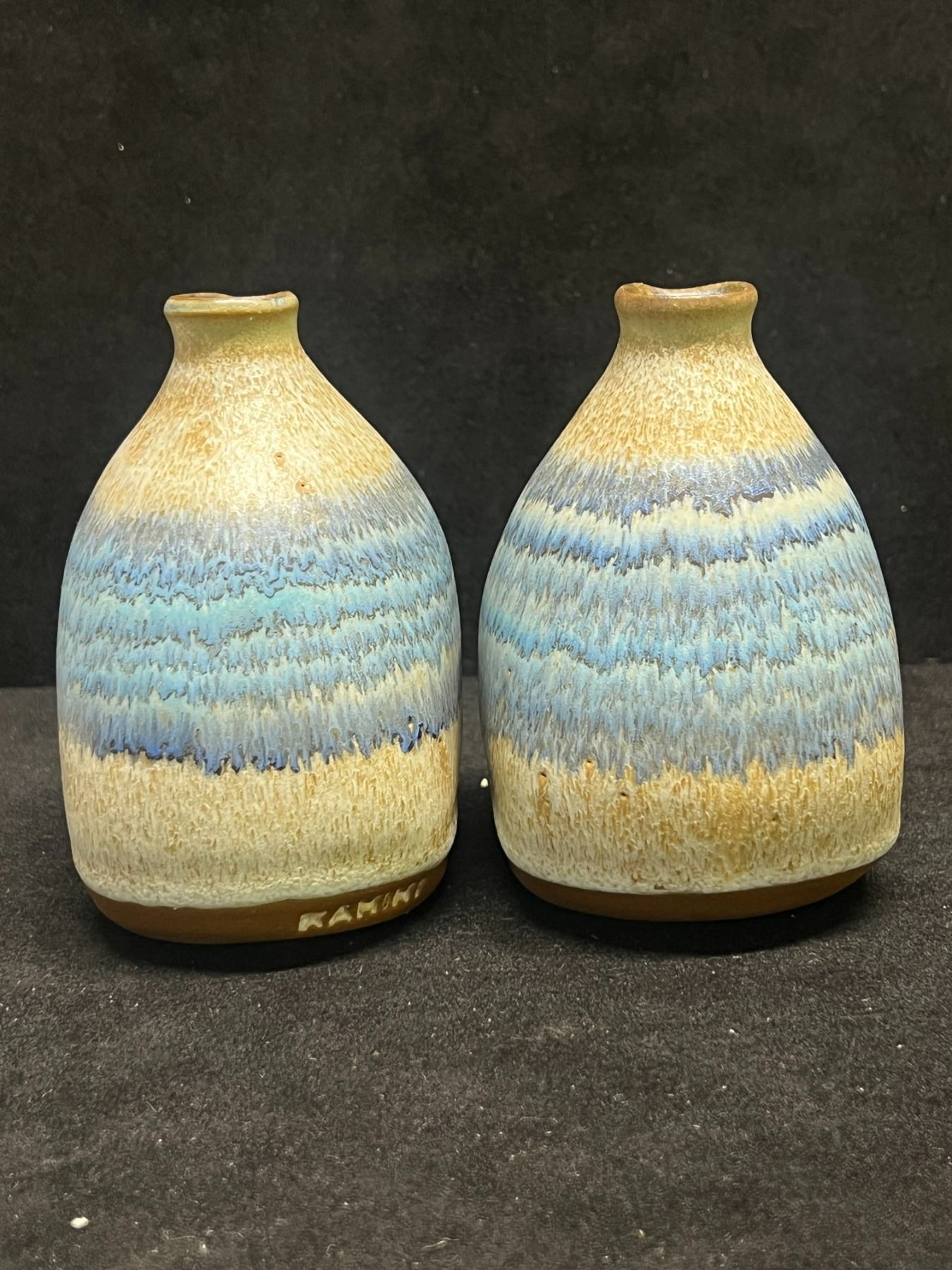 2 Signed Kamini Studio Art Pottery Bud Vases / small bottles? Approx: 4"T 3.5"W