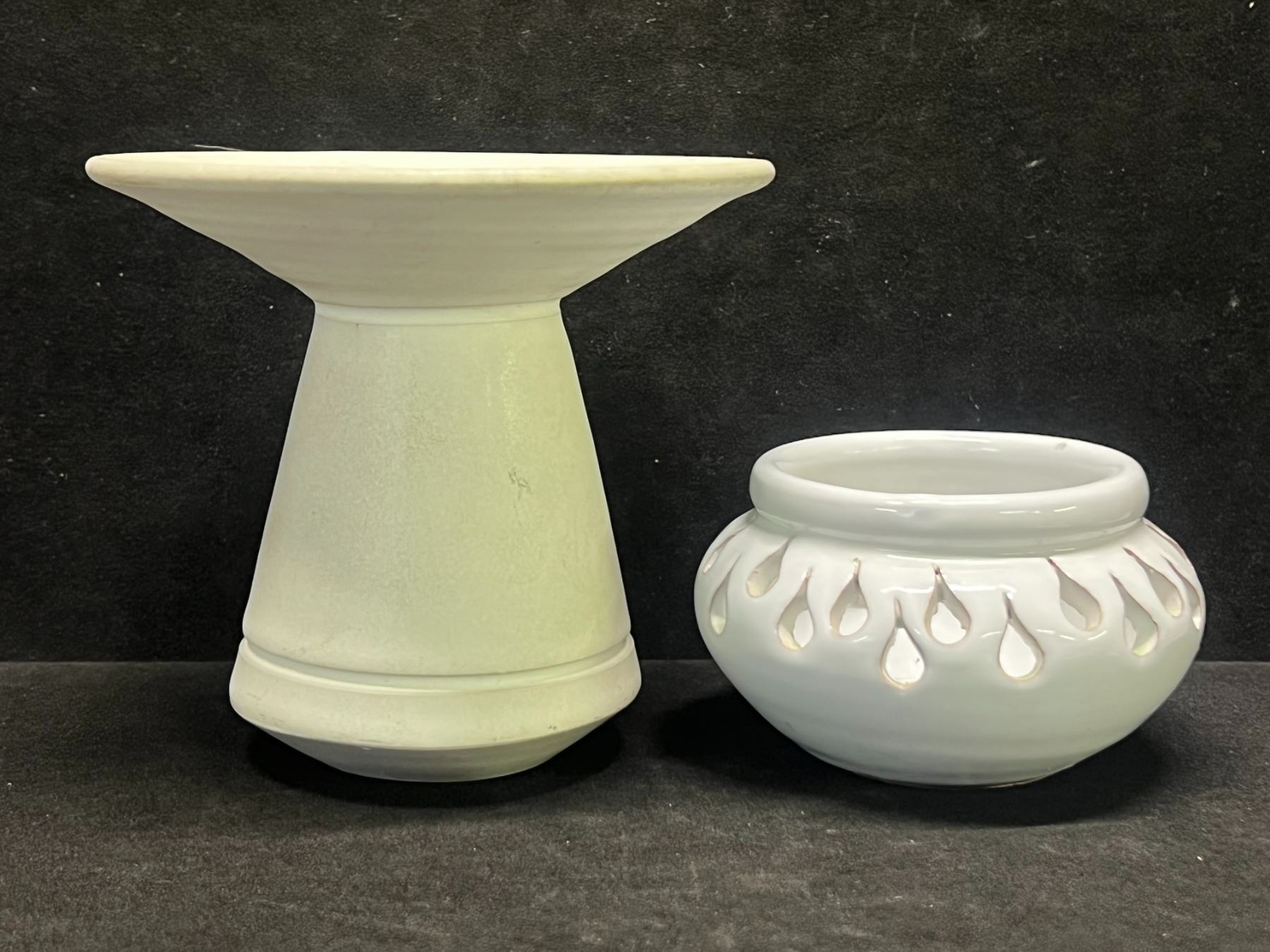 2 Signed/Labelled Ceramic Candle holders (tallest approx: 4"T 5"W)